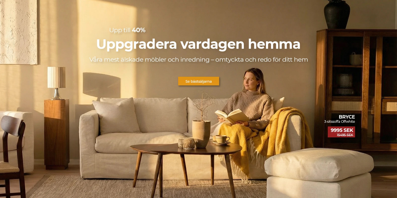 Vi lägger väldigt stor vikt vid att våra soffor ska vara snygga, kvalitativa och prisvärda. Oavsett om du är ute efter en djup soffa, en bred soffa, en nätt soffa eller en trendig soffa – hos oss ska du hitta det du önskar av en soffa och alltid med ett starkt designavtryck.Under åren har vårt sortiment utvecklats och fler kategorier har adderats, idag erbjuder vi ett fullsortiment för dig som önskar möbler till vardagsrummet, till matplatsen, till sovrummet och inredning i form av dekoration eller kök och servering. Om du har en balkong, terrass eller altan har vi också utvecklat vårt sortiment och erbjuder nu över 1000 olika möbler inom utemöbler.