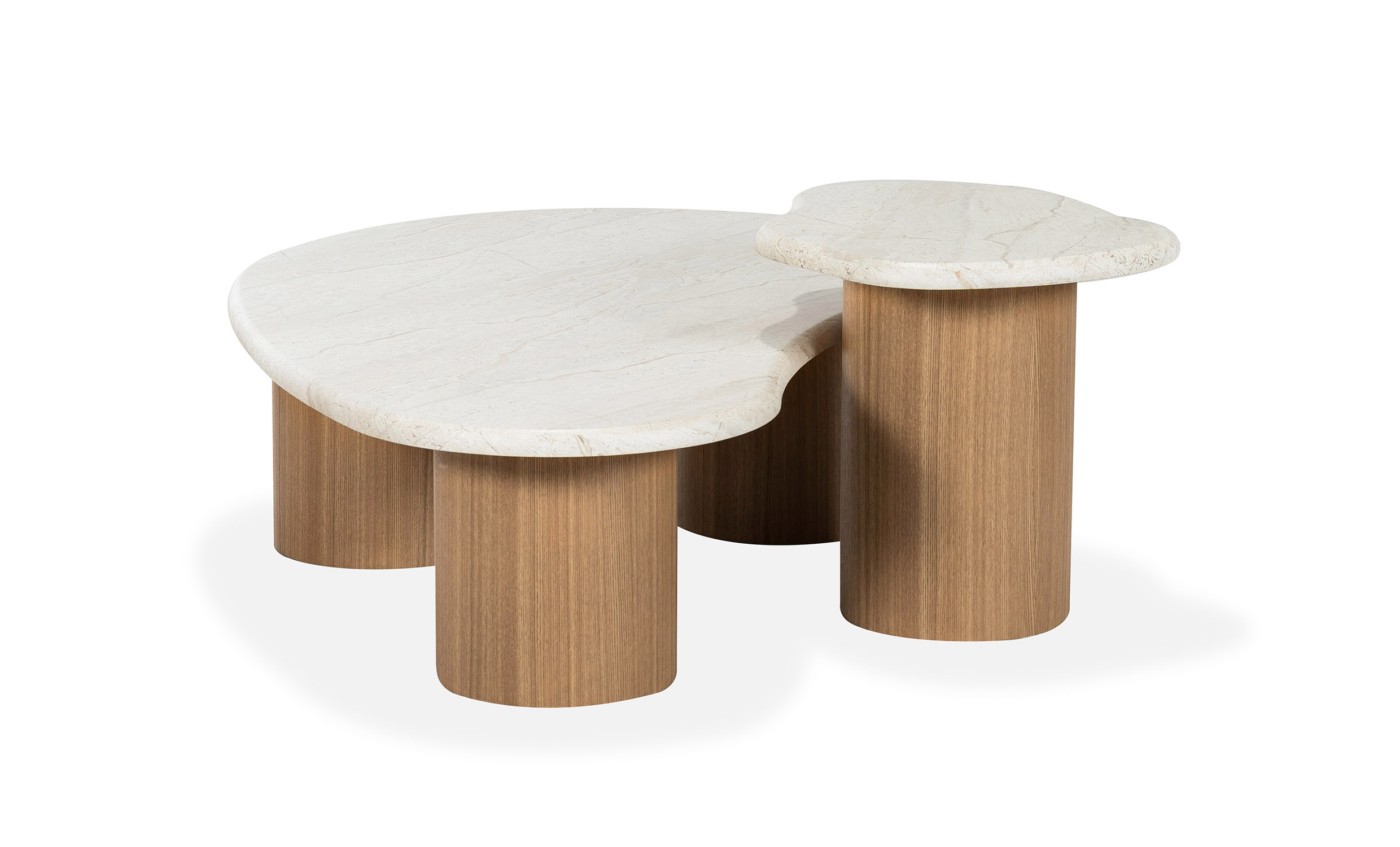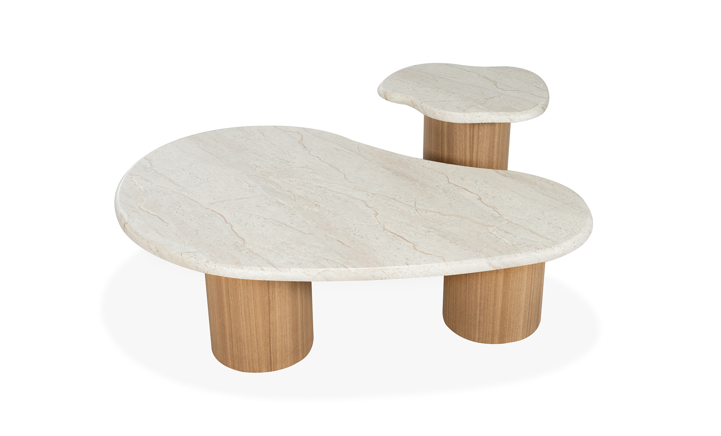 - Benen är tillverkade i MDF med askfaner och bordsskivan är tillverkad i MDF med klarlackerad marmorfoliering.