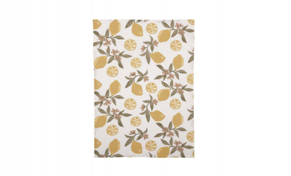 Amy är en kökshandduk som är tillverkad av återvunnen bomull och återvunnen polyester och pryds av ett ljuvligt citronmönster som för tankarna till Medelhavets sol och värme. De mjuka färgerna och det lekfulla motivet sprider en härlig sommarkänsla i köket. Kökshandduken är både praktisk och dekorativ, samtidigt som det hållbara materialvalet gör den till ett medvetet val i vardagen.
