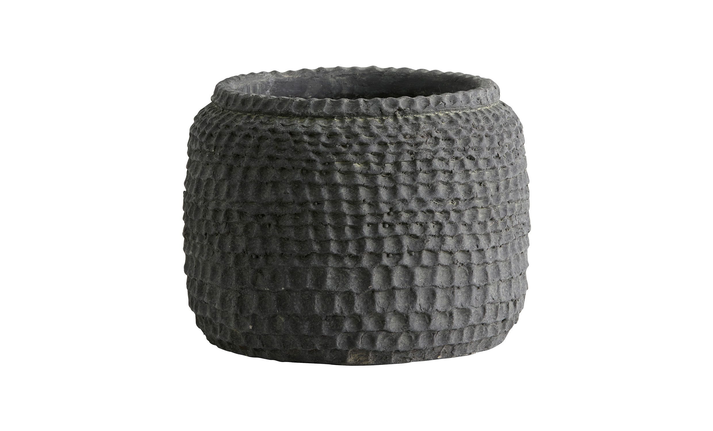 Aoba är en dekorativ kruka i cement som tillför en varm och stilfull känsla till rummet. Den detaljrika ytan och den taktila strukturen ger krukan en skulptural karaktär, vilket gör att den står vackert även på egen hand. Kombinera gärna flera storlekar och addera gröna växter för att skapa en harmonisk och avslappnad atmosfär i hemmet.