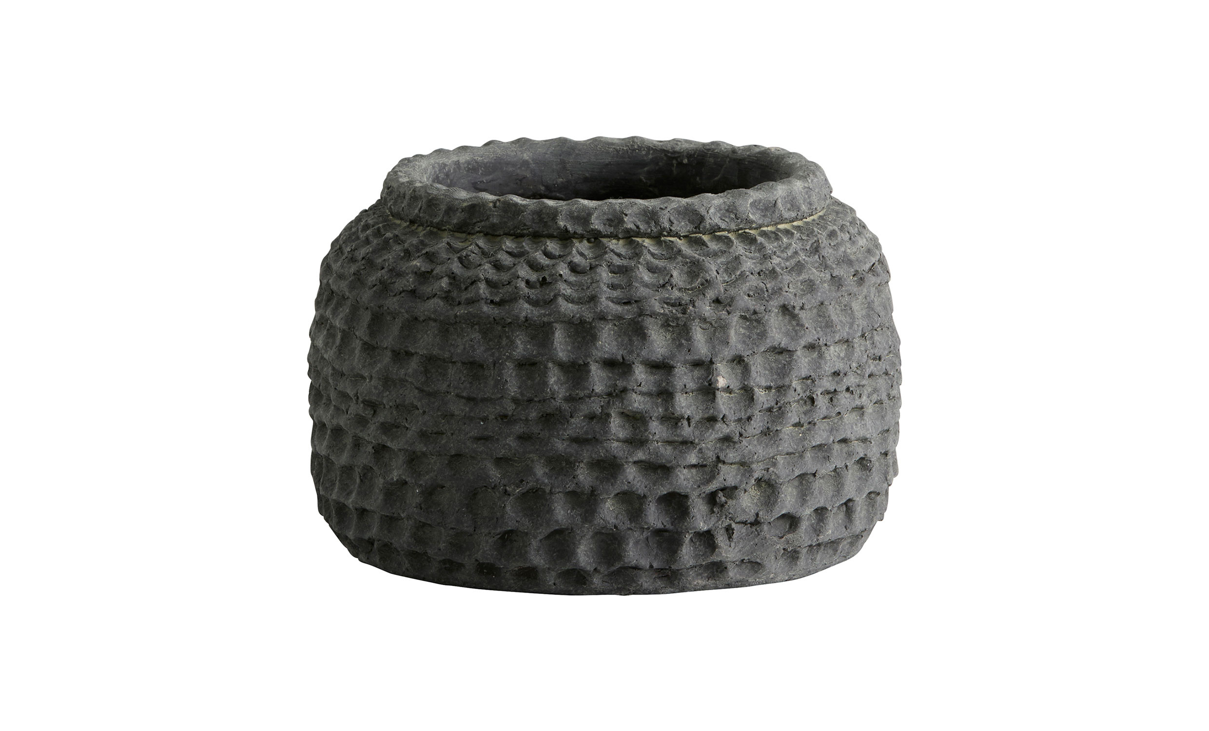 Aoba är en dekorativ kruka i cement som tillför en varm och stilfull känsla till rummet. Den detaljrika ytan och den taktila strukturen ger krukan en skulptural karaktär, vilket gör att den står vackert även på egen hand. Kombinera gärna flera storlekar och addera gröna växter för att skapa en harmonisk och avslappnad atmosfär i hemmet.