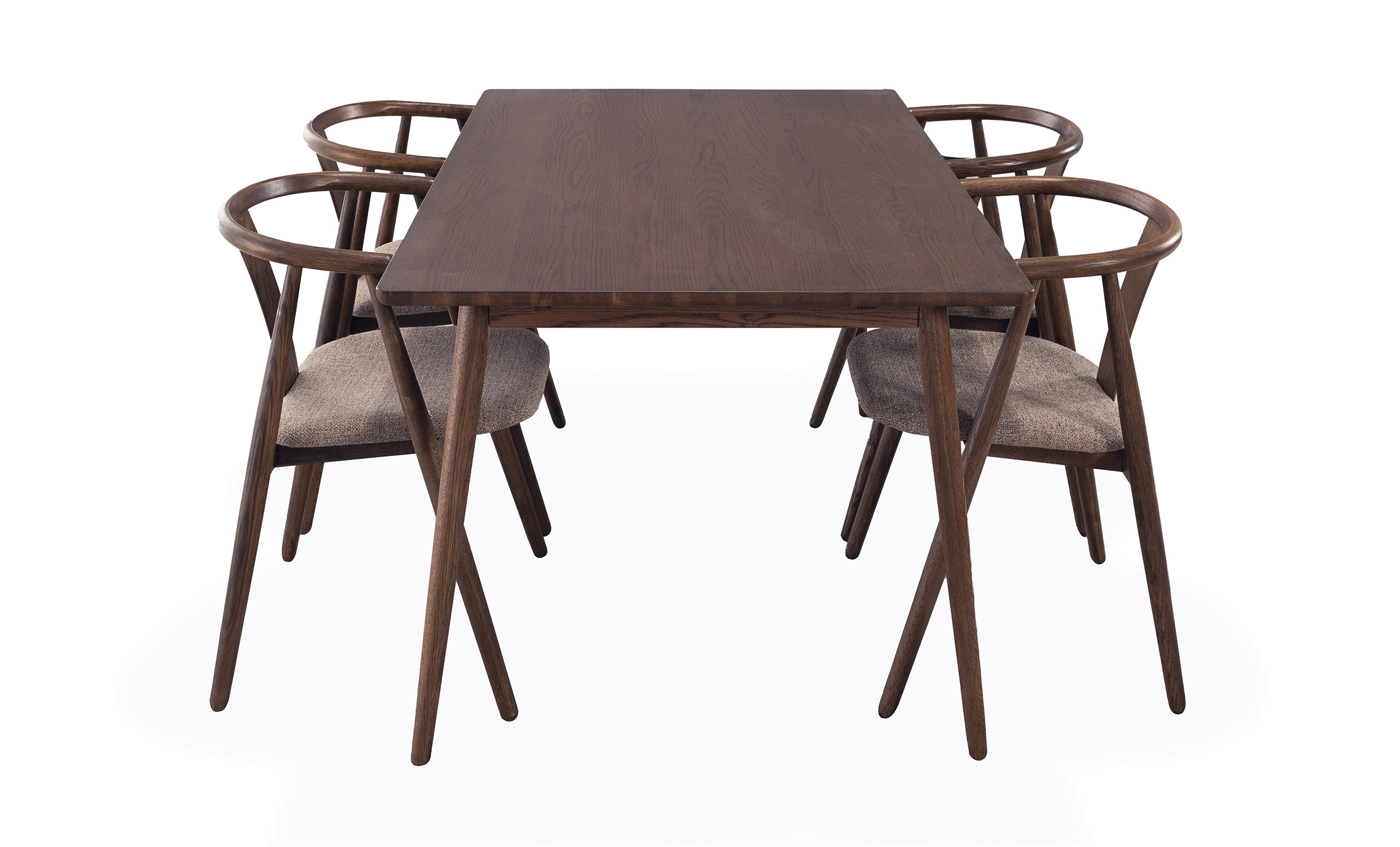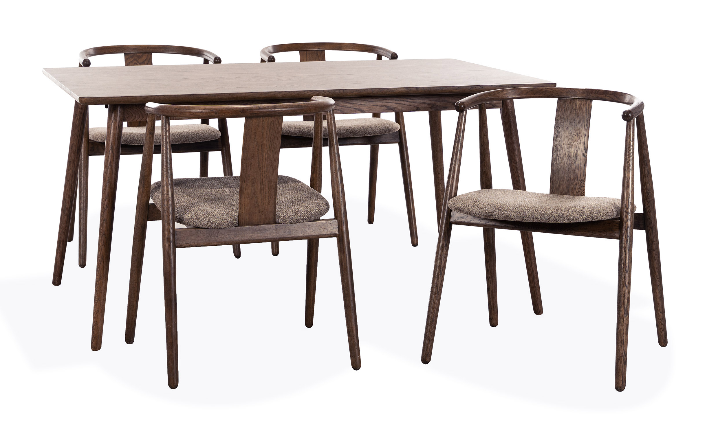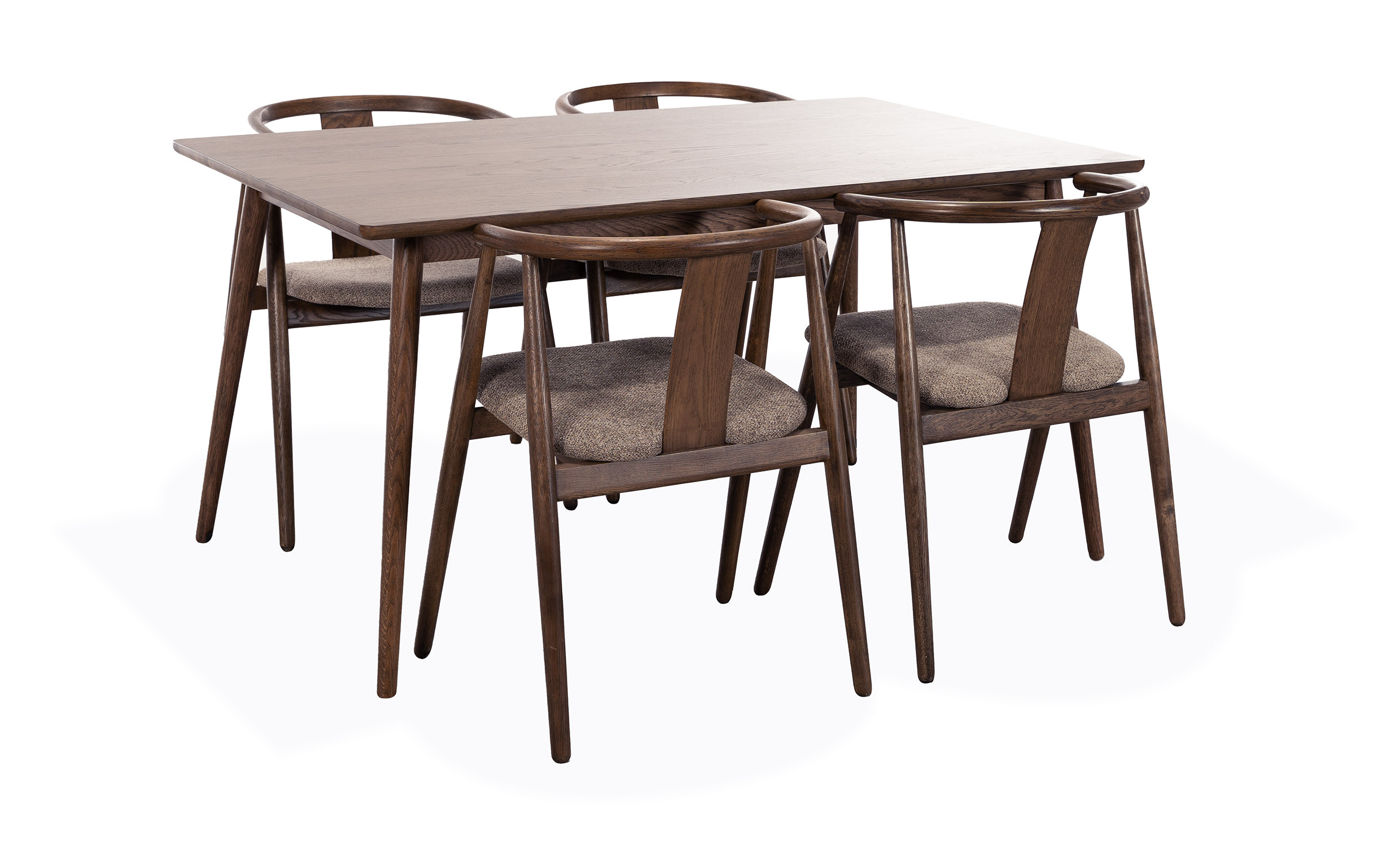 - Stolarna är tillverkade i lackad ek och har en tygsits av 90% polyester och 10% PAN.