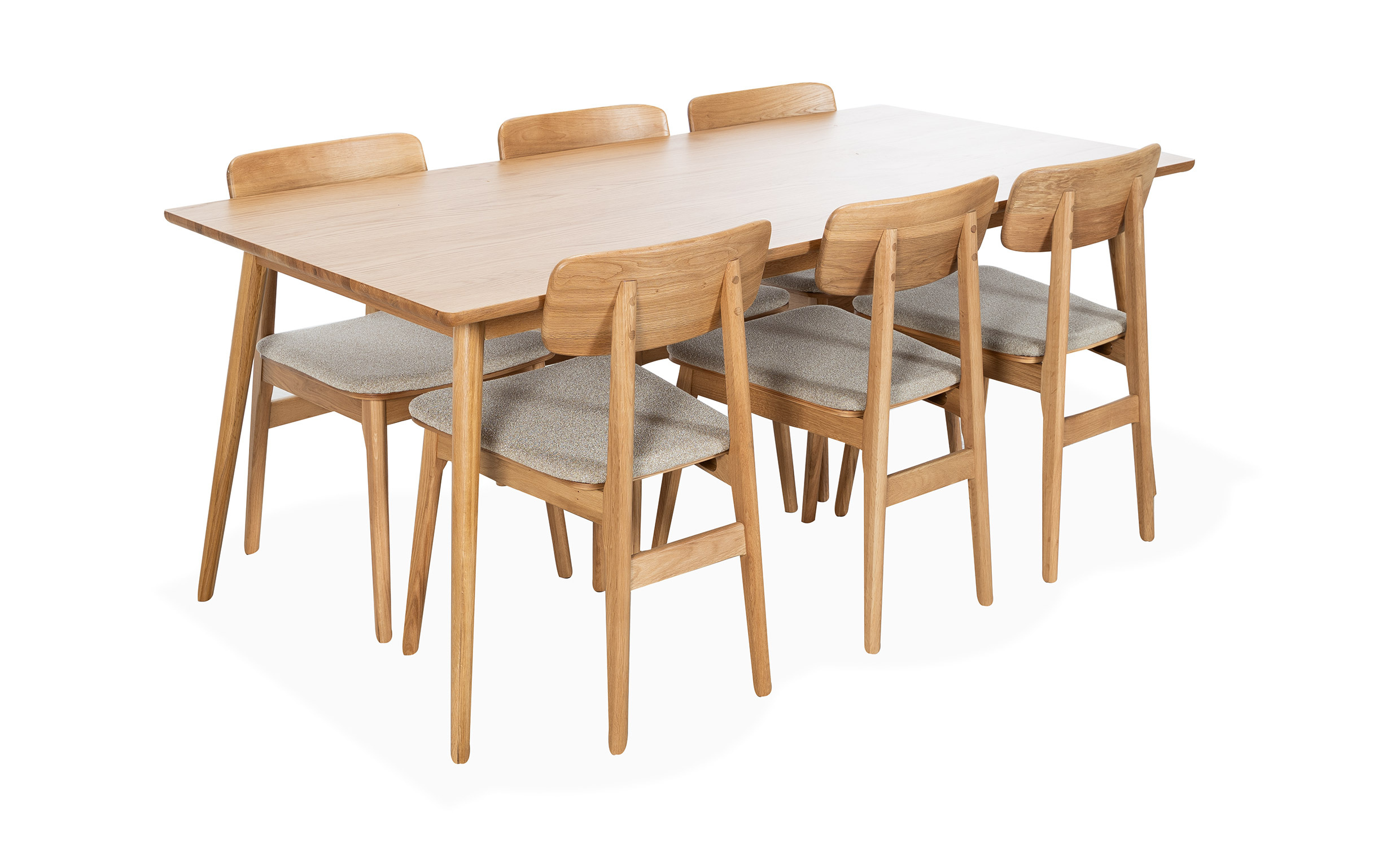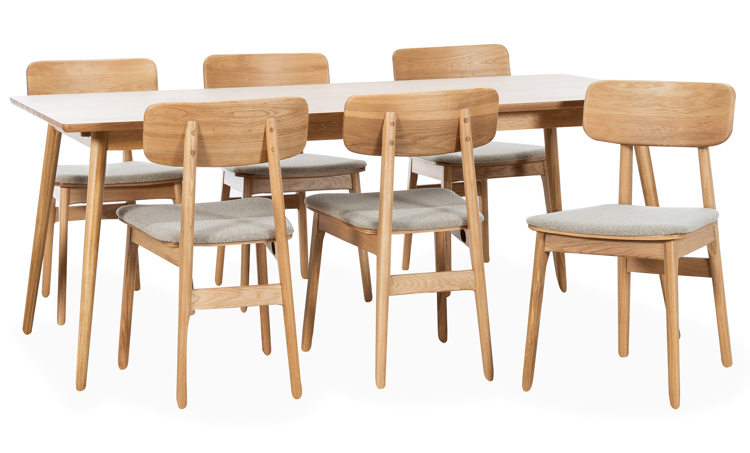 Bjud in till gemenskap med vår snygga matgrupp Blanca/Lino. Blanca matbord är en vacker möbel som utstrålar en tidlös stil och kvalitet. Bordet har raka, lätt sluttande ben och har plats för iläggsskiva på bordets kant. Blanca är tillverkat i ek och ekfanér. Lino är en snygg och bekväm matstol i massiv ek. Stolen är designad med en sits i ett härligt tyg vilket ger en mjuk sittkomfort.