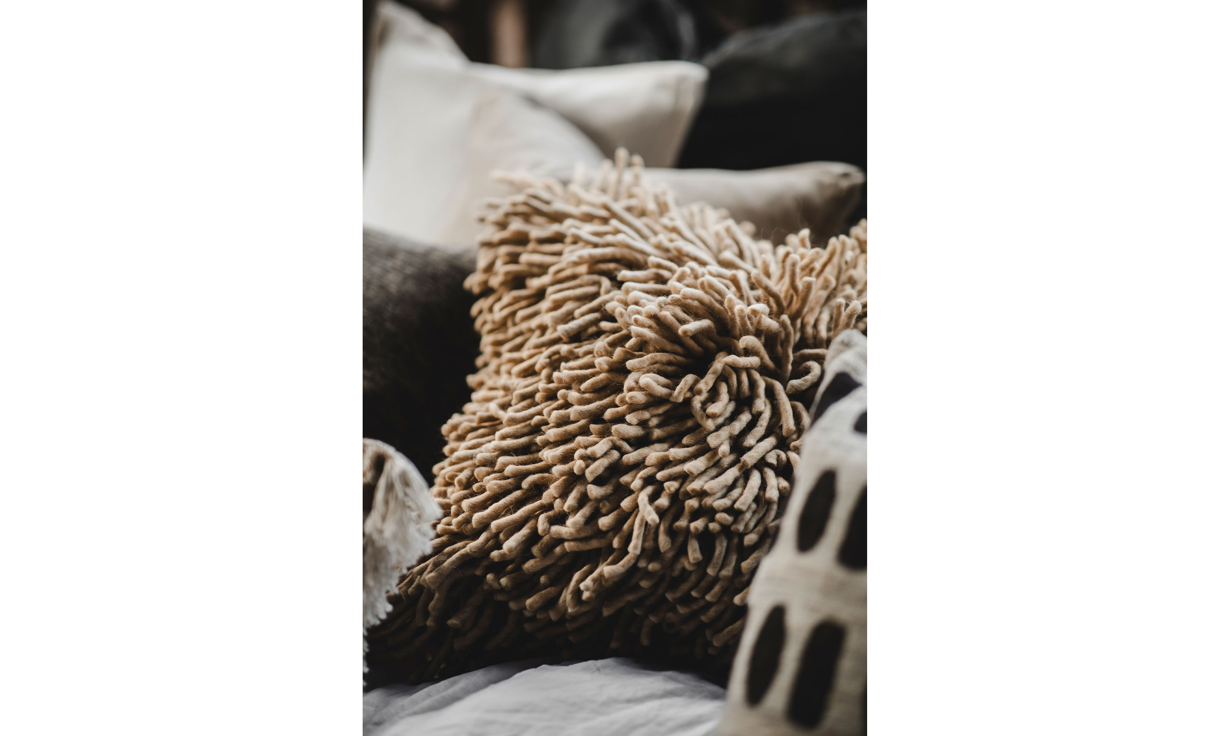 Bonbon är ett kuddfodral i 50x50 cm som visar att storlek inte avgör genomslagskraft. Med sin fluffiga yta i tovad ull blir Bonbon ett tydligt statement i soffan, fåtöljen eller sängen. Den unika strukturen skapar både djup och mjukhet och ger rummet en varm, ombonad känsla. Bonbon är mer än en kudde, det är en dekorativ detalj som tillför textur, personlighet och ett lyxigt uttryck, oavsett var den placeras.
