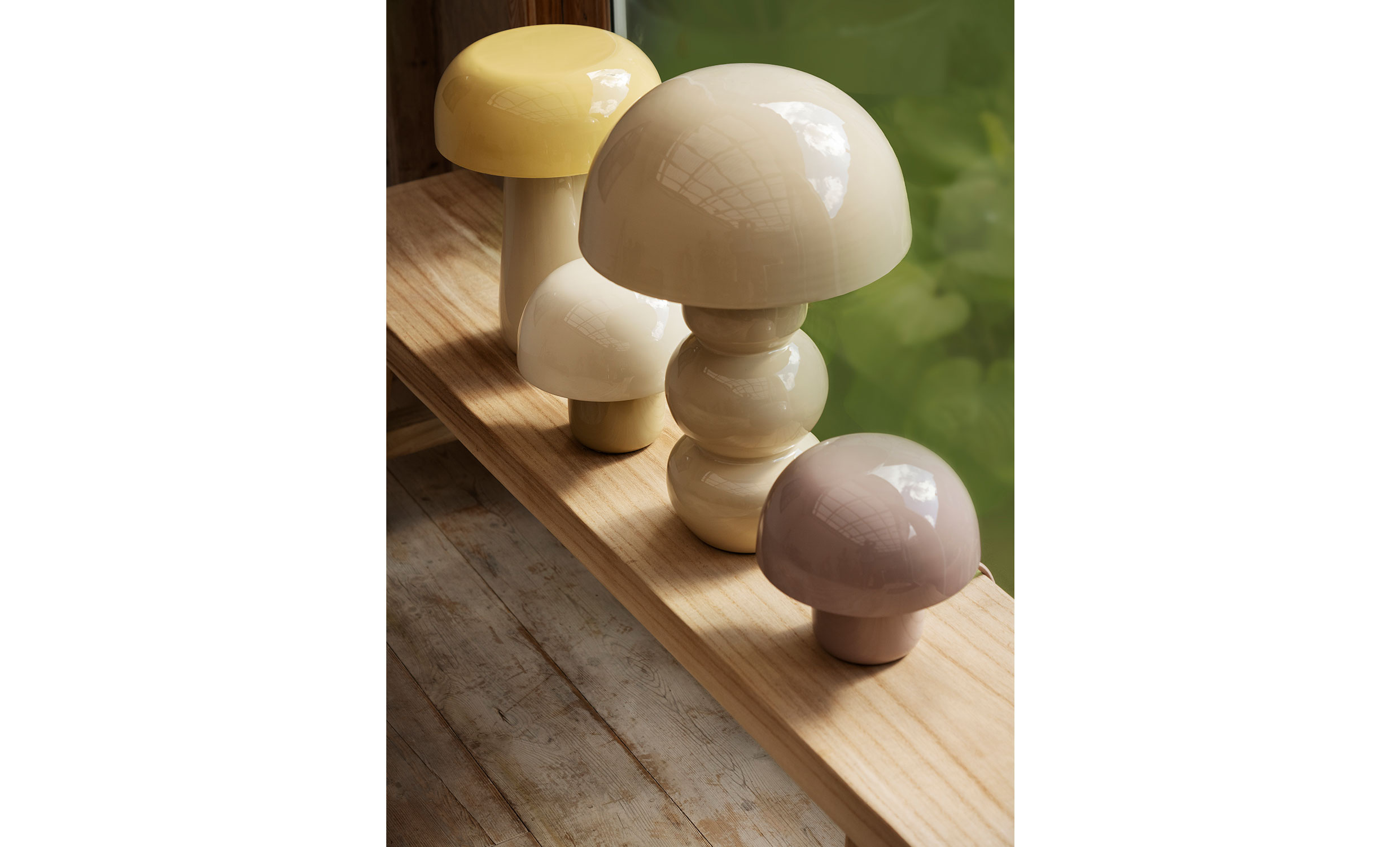 Denna emaljerade bordslampa i dämpad offwhite och khaki tillför mjuk karaktär och subtil färg till rummet. Tillverkad i järn och handemaljerad i en högblank finish som ger djup och lyster. Den svampinspirerade silhuetten sprider ett behagligt, mjukt ljus och passar lika fint på nattduksbordet som i vardagsrummet eller på en byrå.