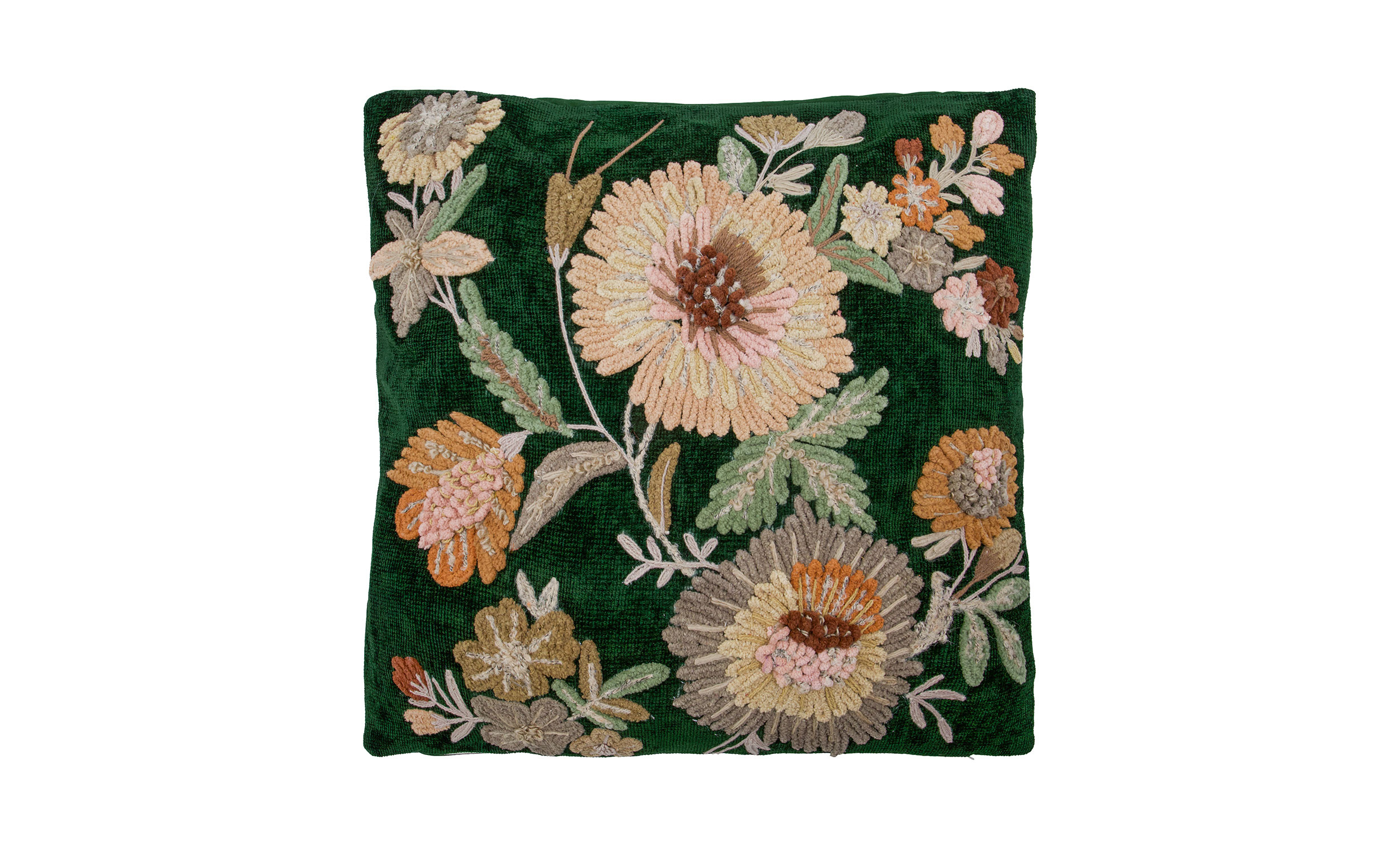 Bota kuddfodral är tillverkat i en mjuk blandning av bomull och viskos och har ett tätt, rikt broderat blommönster som ger en tydlig tredimensionell känsla. Den detaljerade broderingen skapar djup och struktur, medan de harmoniska färgtonerna ger kudden ett elegant och levande uttryck. Ett dekorativt kuddfodral som tillför både textur och personlighet till inredningen.