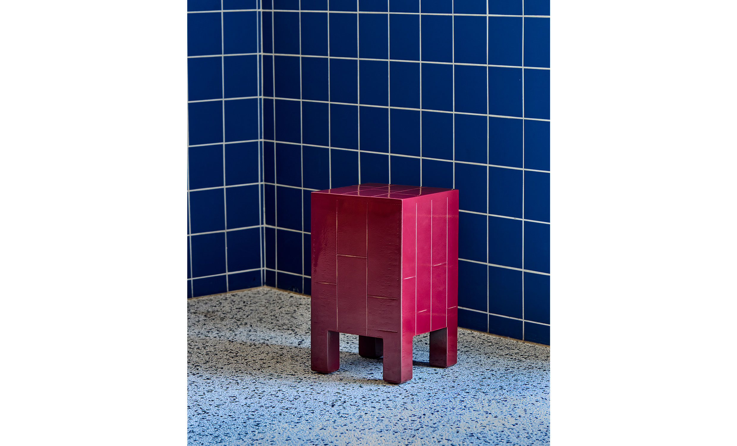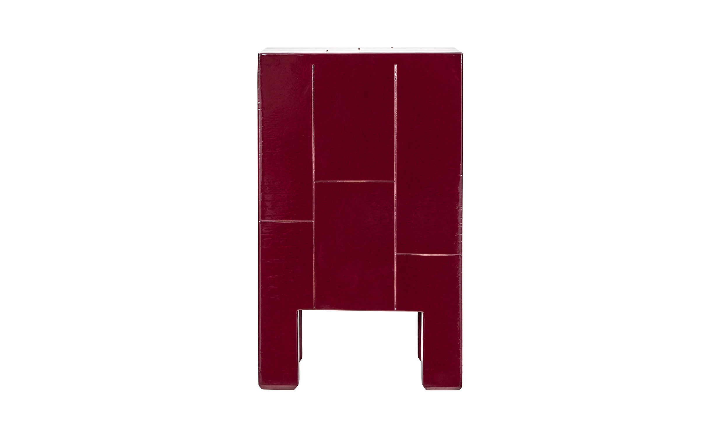 Detta högblanka sidobord i röd nyans fungerar både som ett funktionellt bord och ett skulpturalt blickfång. Den handgjorda ytan med kakel i mangoträ ger struktur och djup, medan den djärva lackerade färgen tillför energi och personlighet till rummet. Använd det som soffbord, sidobord eller som en dekorativ detalj i vardagsrum eller sovrum.