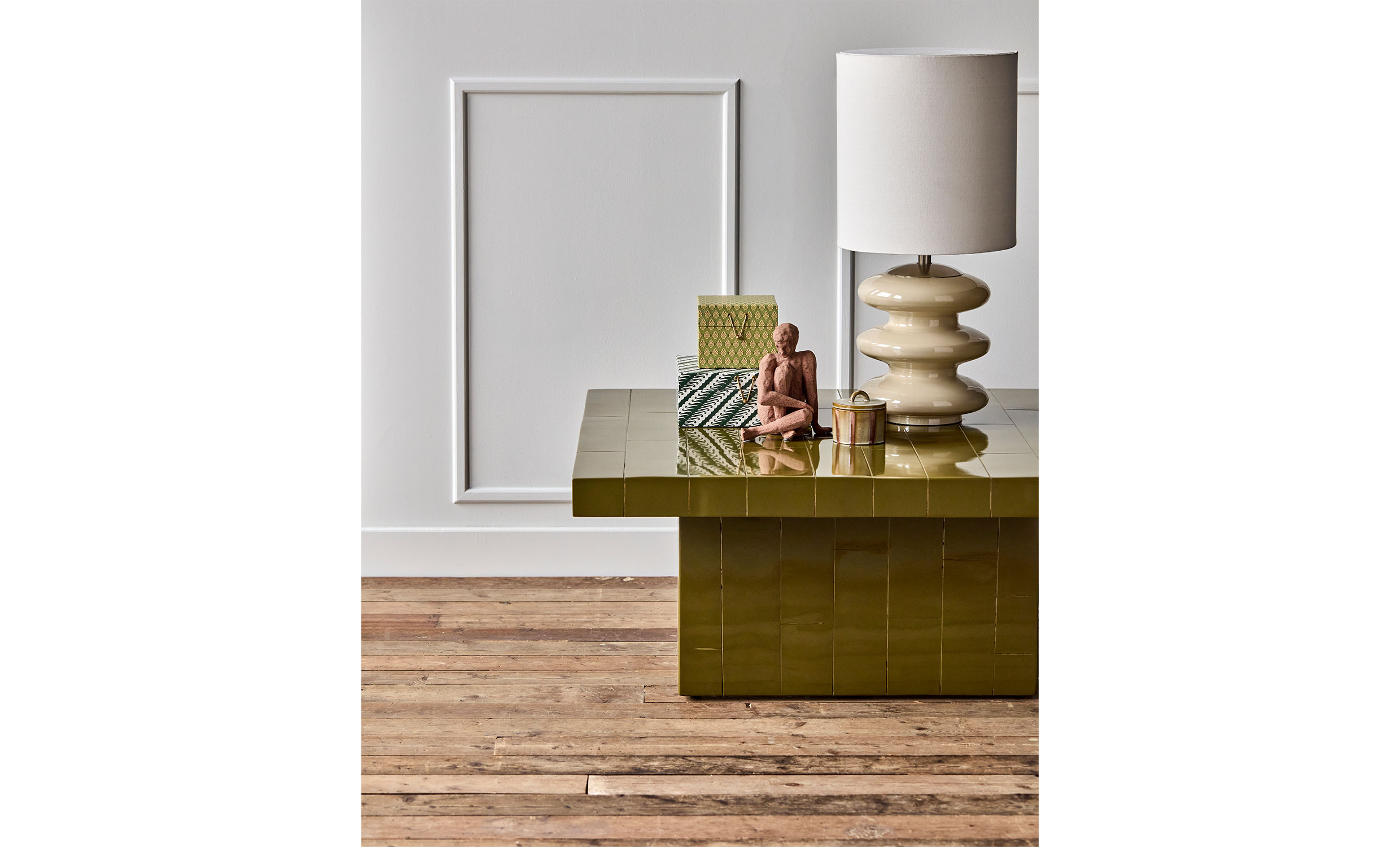 Detta handgjorda soffbord tillför stark personlighet och färg till vardagsrummet. De breda kaklade ytorna i mangoträ, lackerade i högblank grön nyans, skapar ett uttrycksfullt och iögonfallande helhetsintryck. Den slutna sockelbasen ger designen stadga och balans, samtidigt som bordet blir en naturlig mittpunkt i rummet.