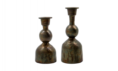 Dessa två rustika ljusstakar i antik mässing skapar en varm och inspirerande stämning i hemmet. Det handgjorda uttrycket i aluminium ger en konstnärlig känsla, medan den eleganta formen drar blicken till sig. Placera dem på matbordet, soffbordet eller tillsammans på en bricka för en personlig och inbjudande atmosfär.