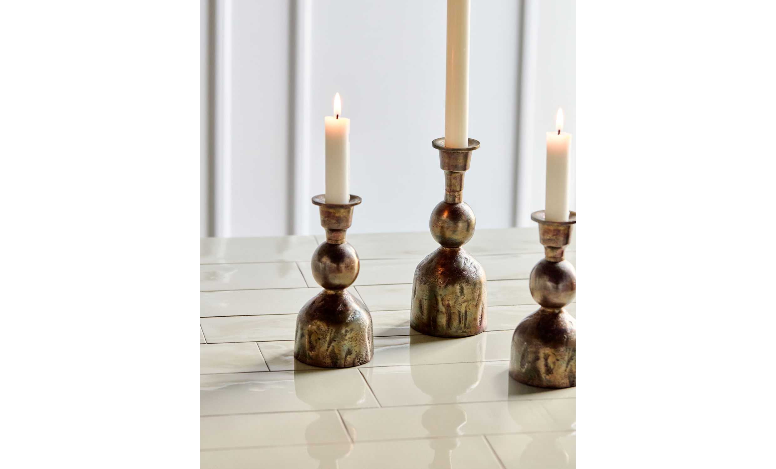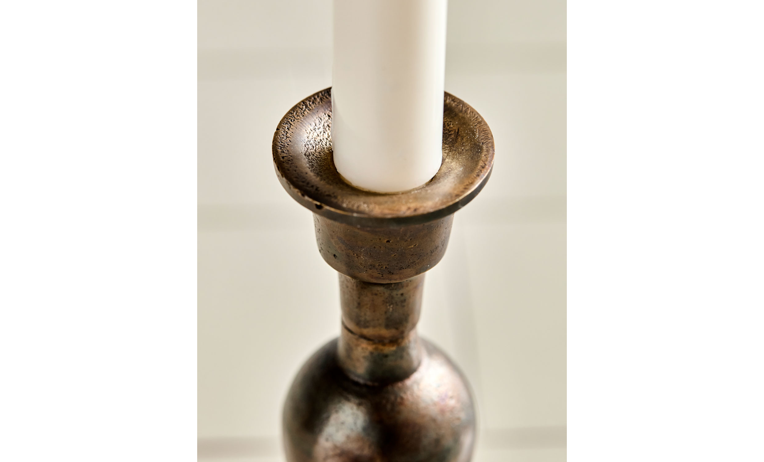 - Två rustika ljusstakar i antik mässing från House Doctor.