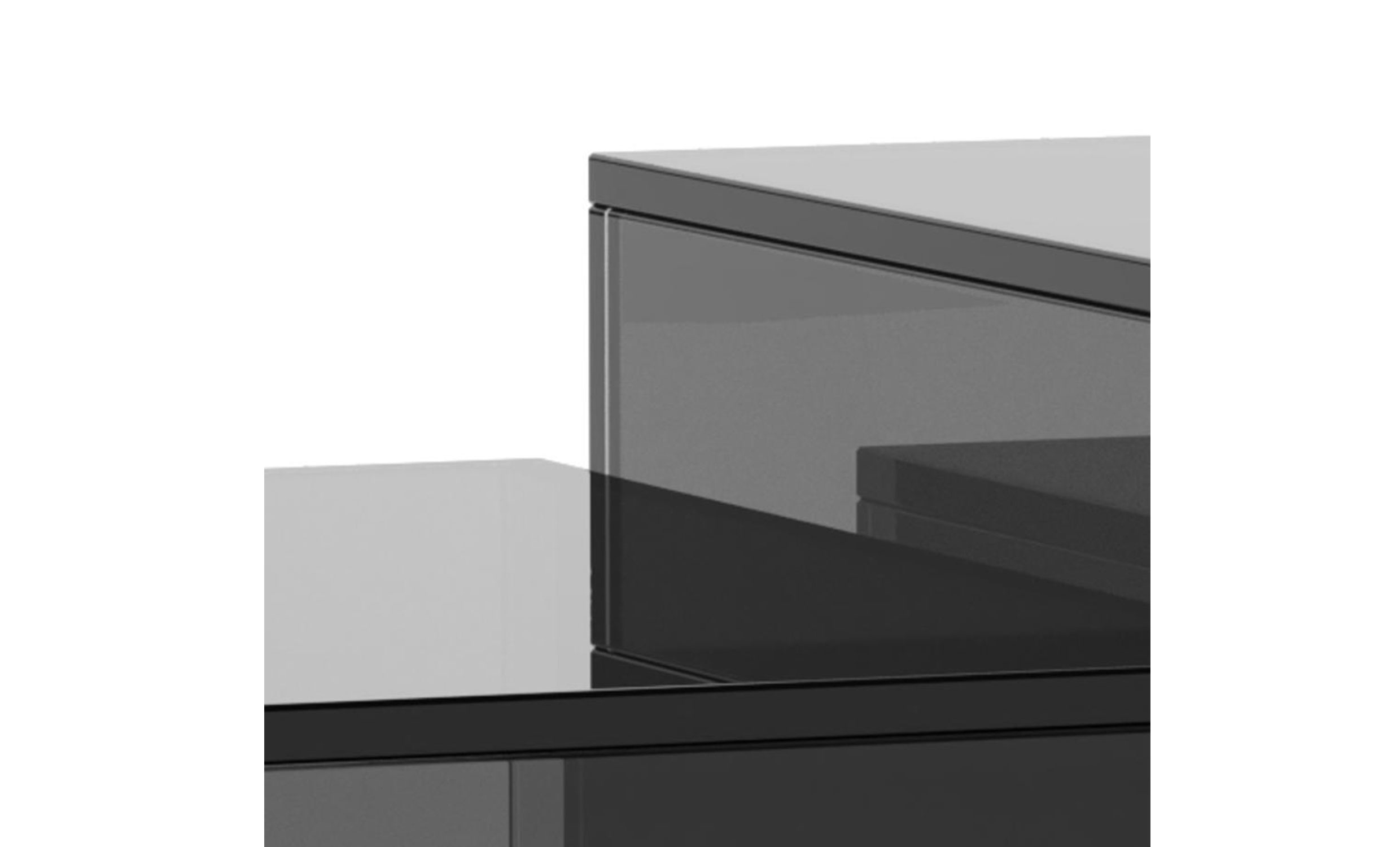 Daisy är ett stilrent soffbordset i härdat glas som ger vardagsrummet en stilren och modern känsla. Setet består av två kvadratiska bord i olika storlekar vilket skapar ett levande och lager på lager uttryck. Borden kan placeras tillsammans för en dynamisk helhet eller var för sig för en mer luftig och flexibel möblering. Den transparenta designen gör att rummet upplevs lätt och öppet samtidigt som den gråa tonen adderar djup och elegans.
