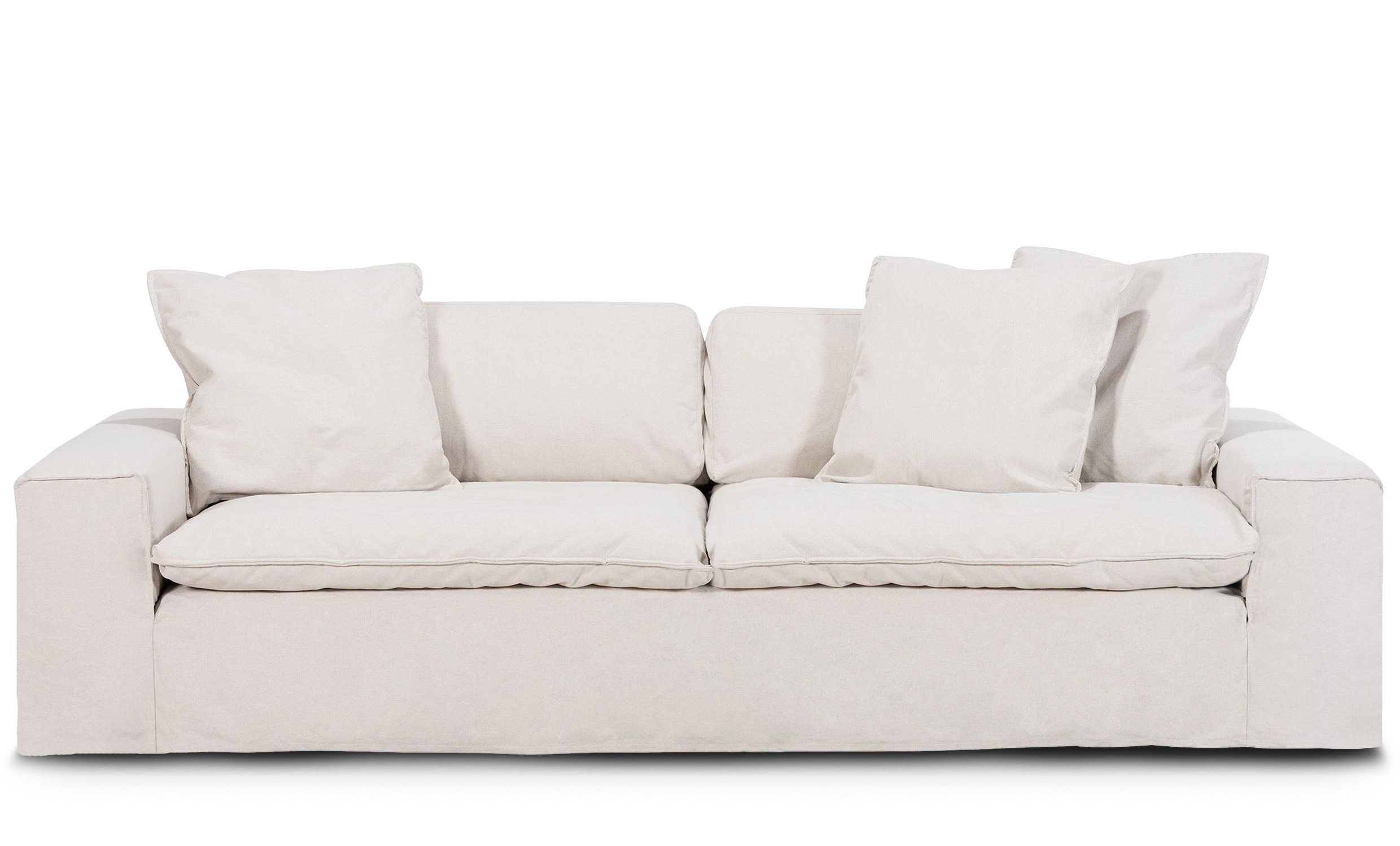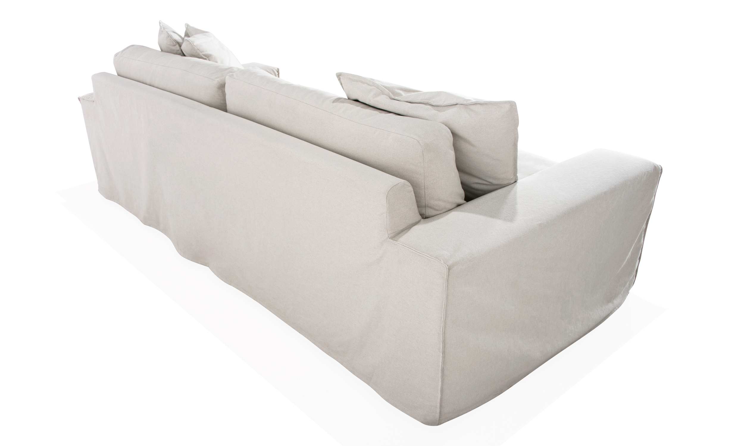 - Sitt- och ryggplymåer samt de tre prydnadskuddarna är fyllda med en blandning utav polyesterfiber och strimlat kallskum som ger en liknande känsla i komforten som en dunsoffa.