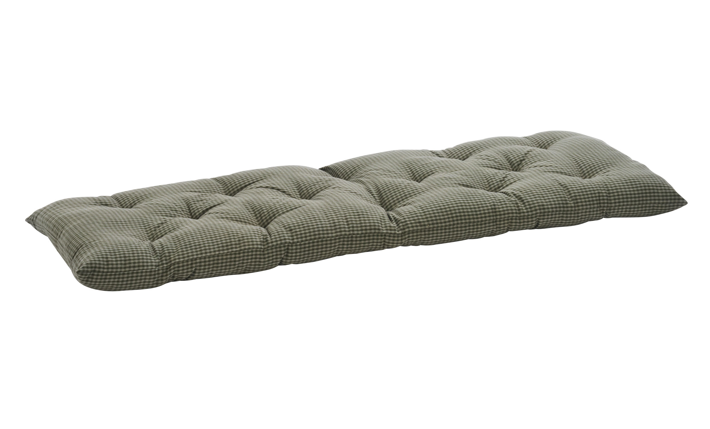 Denna rutiga bomullsmadrass, tillverkad i Indien, förhöjer vilken sittplats som helst. Den är gjord av högkvalitativ bomull och fylld med återvunnet bomullsmaterial. De mörkgröna och lagergröna tonerna ger både elegans och komfort – perfekt för användning inomhus eller på terrassen.