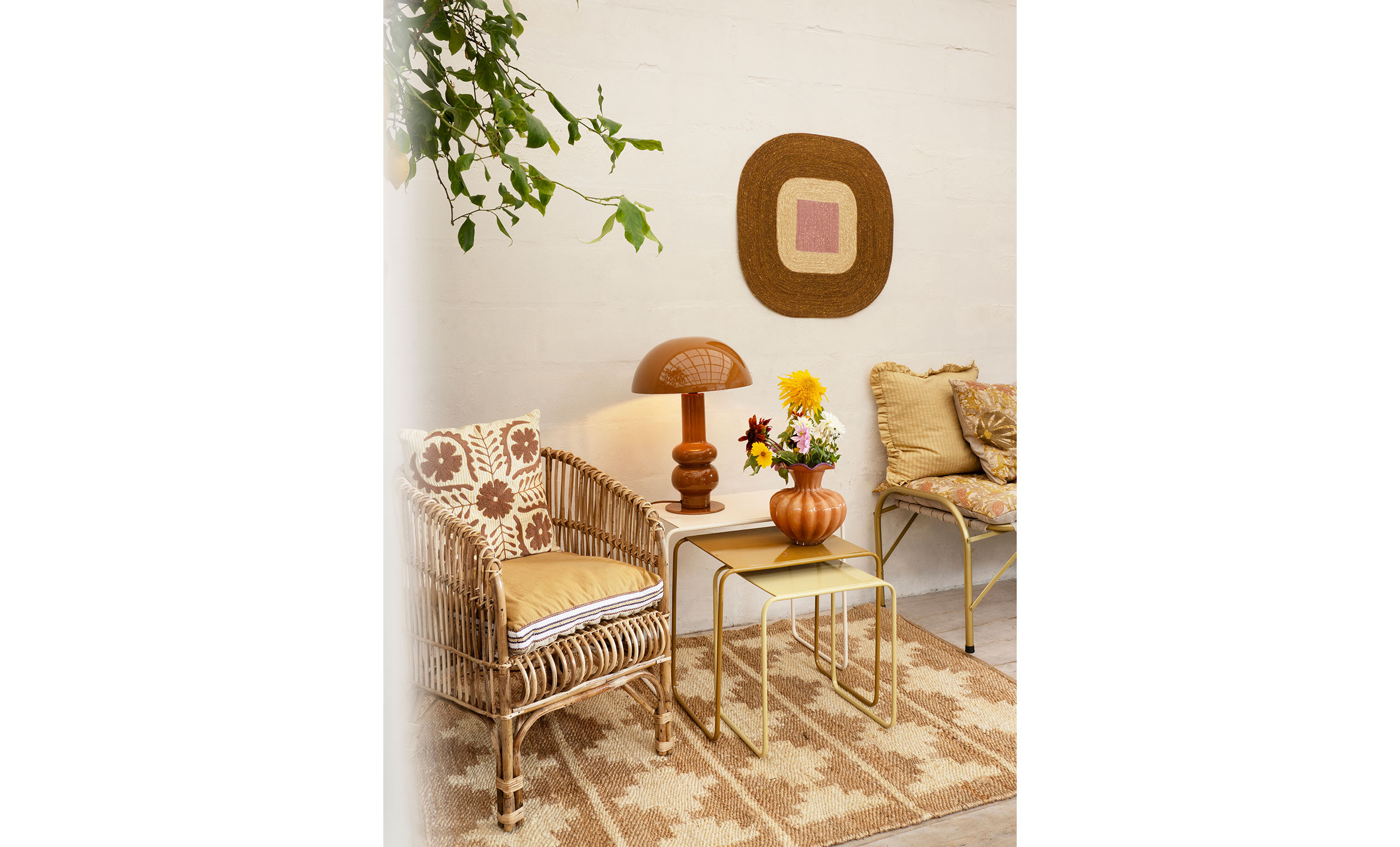 Denna dyna i gult och mjuk sant är tillverkad i slitstark bomull. Den är vändbar i gult och sand och har en randig kontrastkant som ger ett genomarbetat och levande uttryck. Med avtagbar polyesterfyllning och dold dragkedja är den både praktisk och lätt att underhålla. Perfekt på matchande möbler, för avslappnad golvsittning eller för sköna stunder på terrassen.