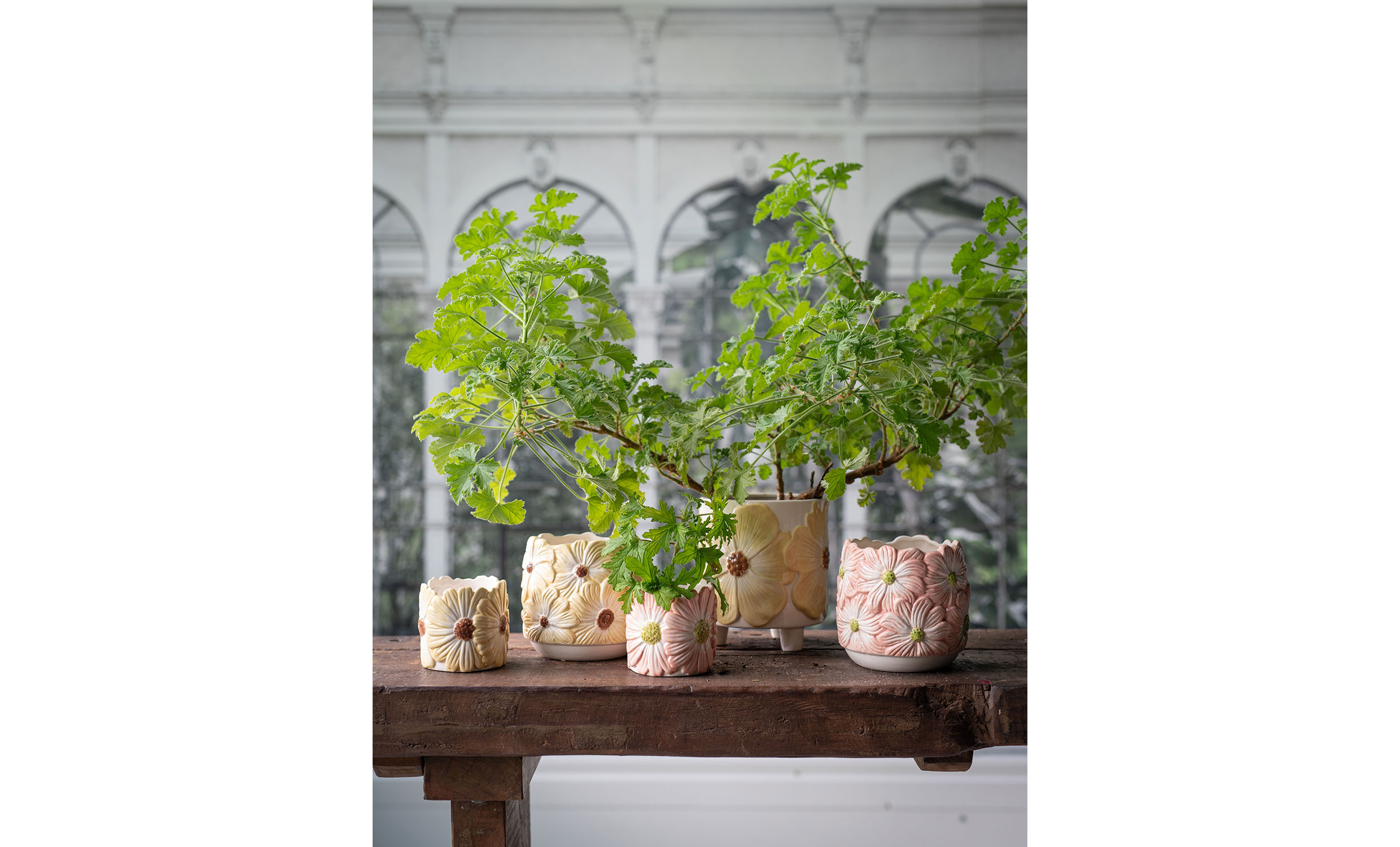 Esther är ett set med två krukor i dolomit med en mjuk ljusgul ton och dekorativt blommönster som ger hemmet ett fräscht och livfullt uttryck. De två storlekarna skapar en fin dynamik och gör det enkelt att arrangera växter tillsammans eller var för sig. Perfekta för fönsterbrädan, hyllan eller sidobordet där du vill tillföra färg och lätthet.