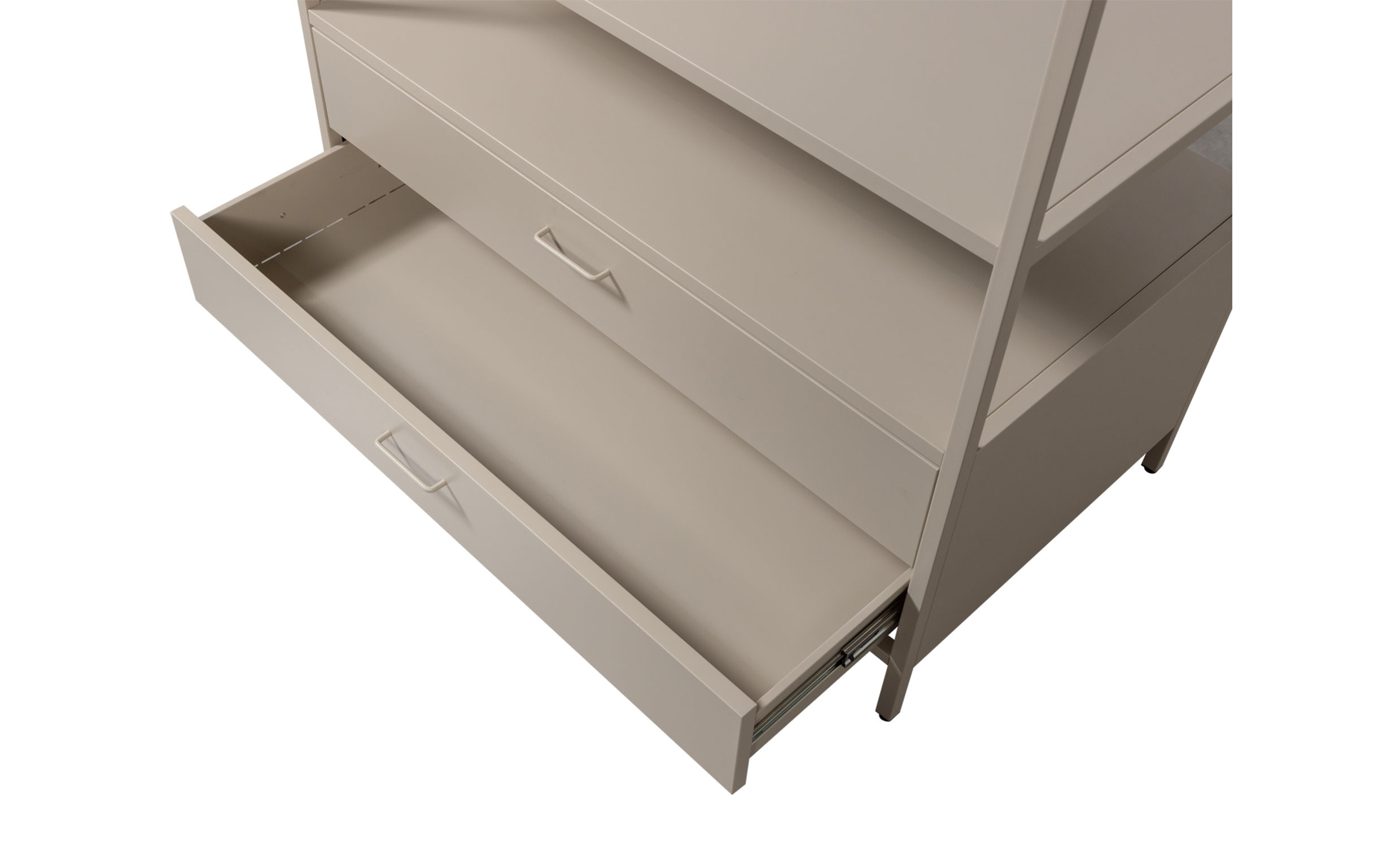 Ferris är en öppen garderob som kombinerar modern design med smart funktionalitet. Med sin minimalistiska form och sandfärgade finish blir den ett stilrent inslag i både sovrum och walk-in closet. Den öppna klädstången ger en tydlig överblick över dina favoritplagg, medan de två rymliga lådorna erbjuder praktisk förvaring för exempelvis underkläder, accessoarer eller andra småsaker. Ferris är den perfekta lösningen för dig som vill kombinera estetik med ordning och struktur.
