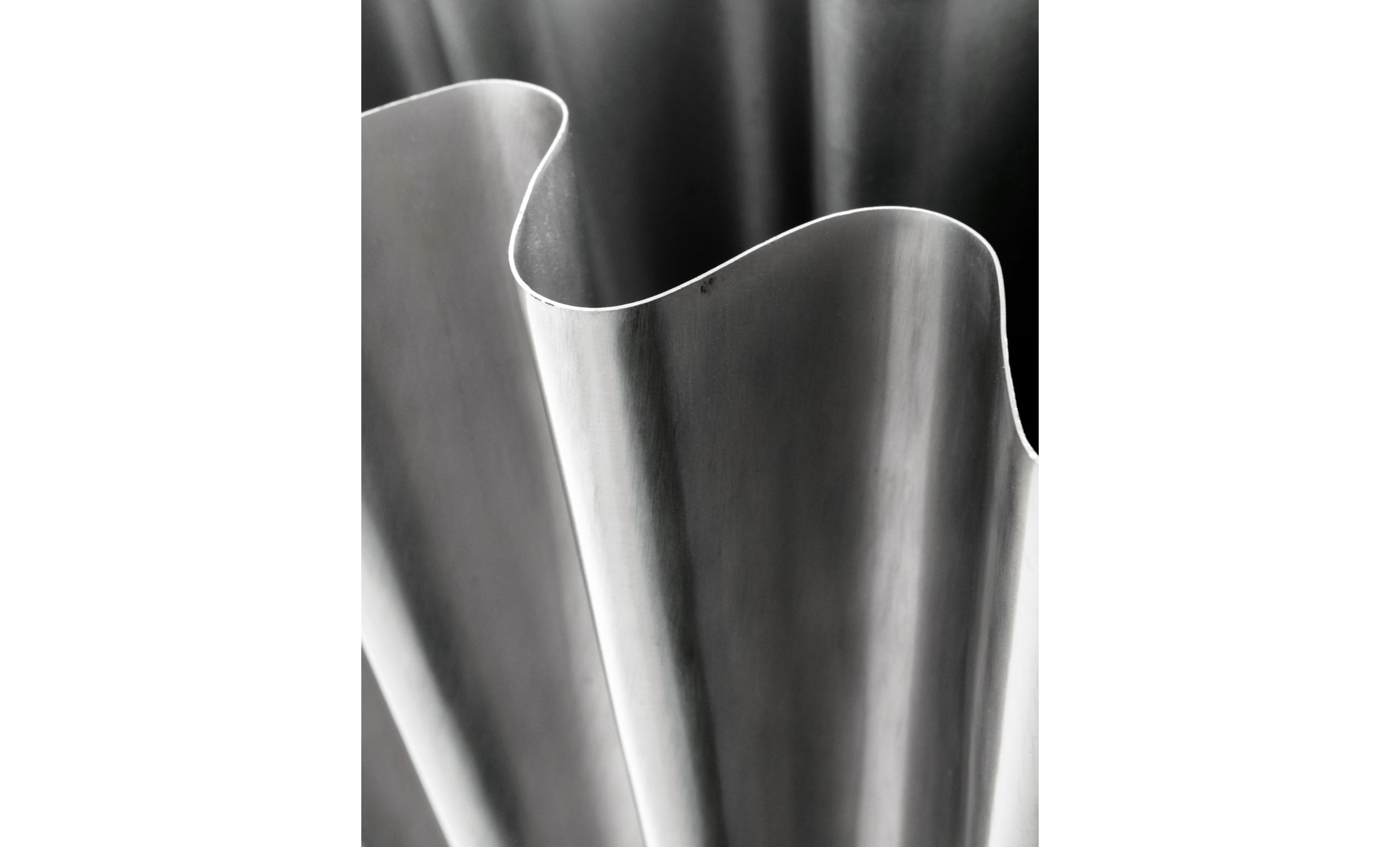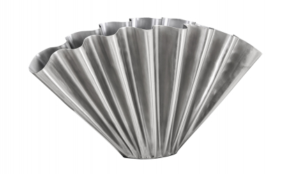 Flood är en dekorativ och uttrycksfull inredningsdetalj med en unik vågig form som fångar ljuset på ett elegant sätt. Den borstade silverfinishen ger ett modernt intryck och den handgjorda designen tillför både karaktär och exklusivitet. En vas som lika gärna kan stå som solitär som kombineras med andra inredningsfavoriter.