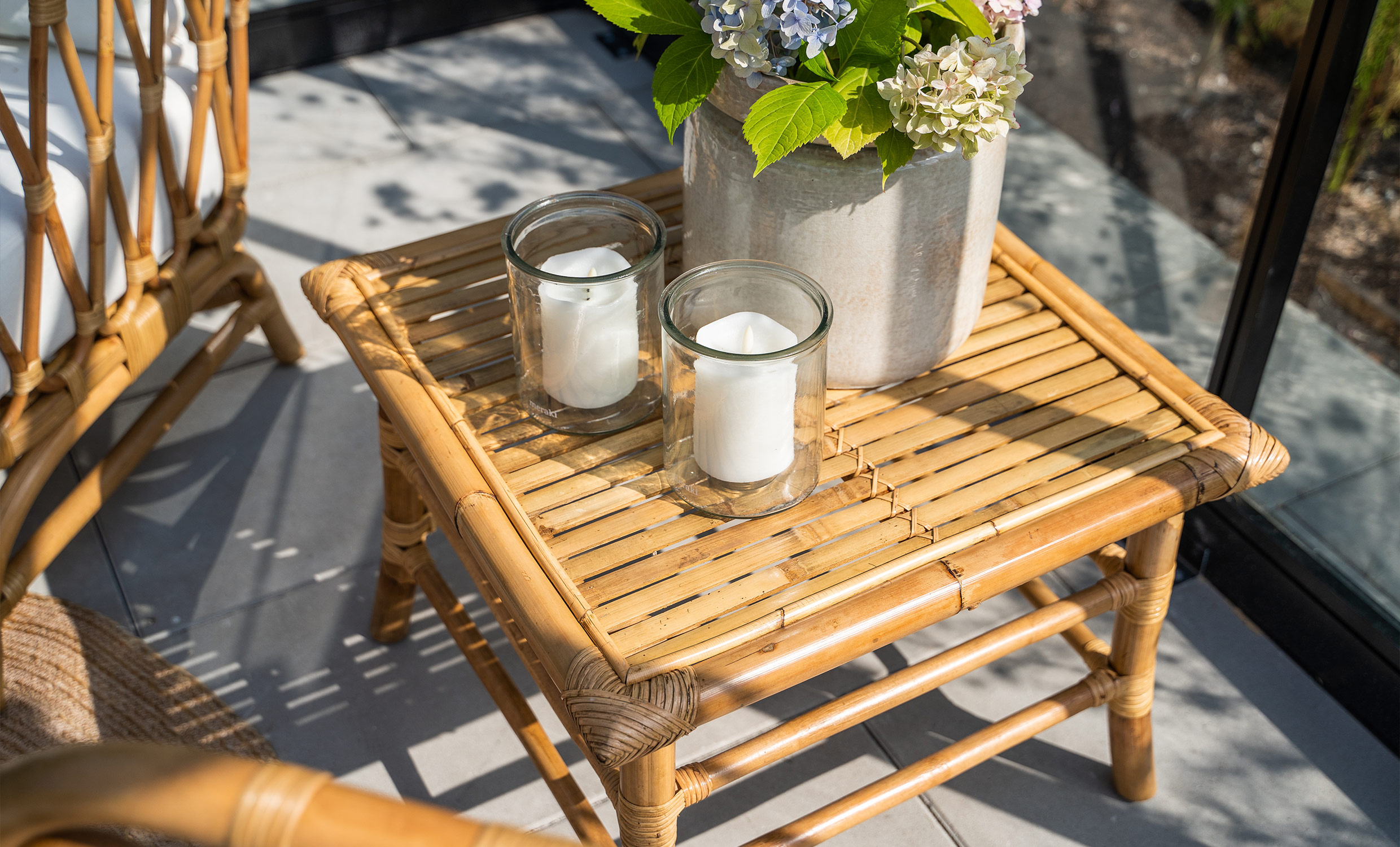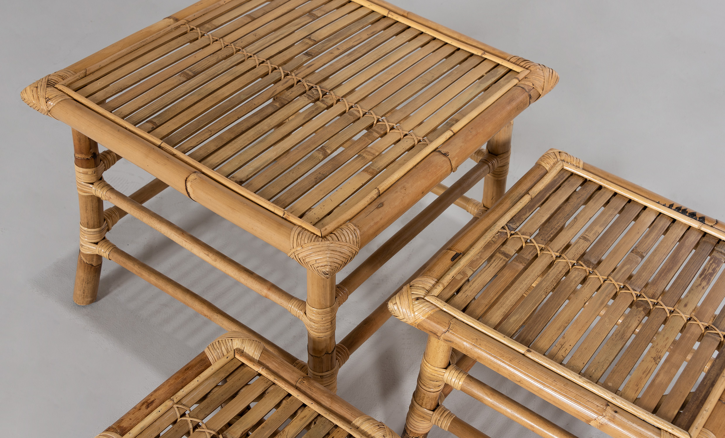 - Stomme i rotting och bordsskiva i bambu som är naturmaterial. Utseende kan därmed variera något, vilket också gör varje bord unikt.