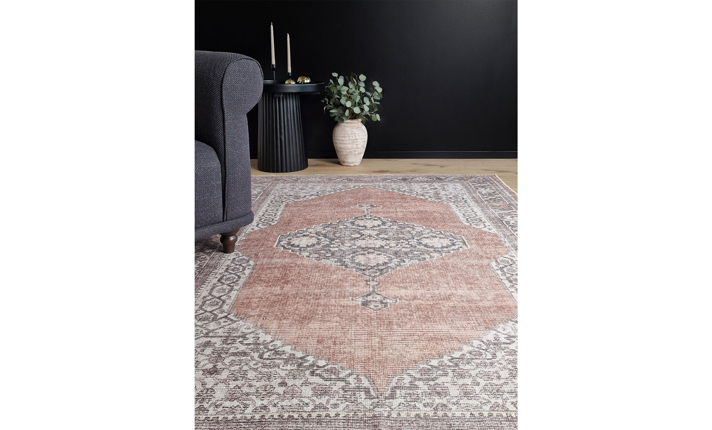 Heriz har ett orientaliskt inspirerat mönster med vackra, jordnära färgkombinationer som tillför en lyxig känsla till hemmet. Garnet är en mjuk blandning av polyester, bomull och viskos, vilket gör mattan följsam och behaglig under fötterna. Den fina lystern i garnet gör mattan snabbt till en favorit i hemmet. Tack vare kort lugg och slitstark kvalitet är den lätt att hålla ren från damm och smuts.