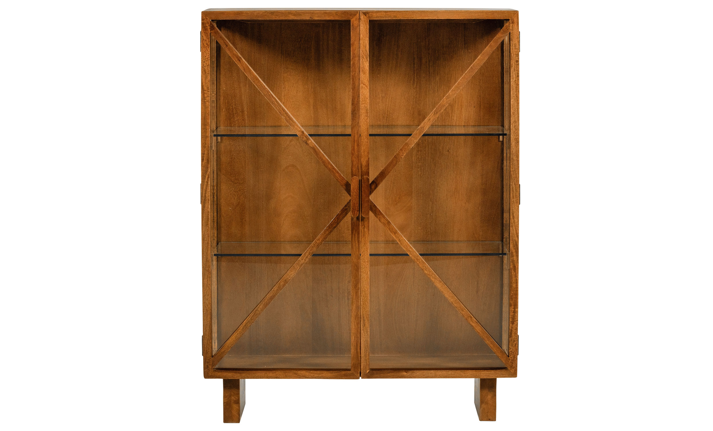 Kella är ett elegant vitrinskåp från WOOOD som kombinerar mangoträ med glasdetaljer för ett modernt och naturligt uttryck. Perfekt för att visa upp ditt finaste porslin, dina hemtillbehör eller andra favoriter med stil och känsla.