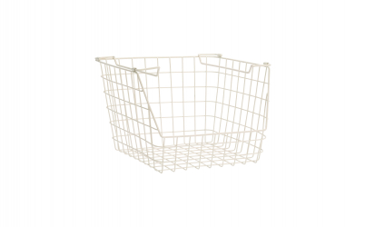 Denna stapelbara trådkorg i offwhite finish är tillverkad i slitstarkt järn med handsvetsad metalltråd som ger en stabil men luftig konstruktion. Den smarta designen gör den enkel att stapla och perfekt för att organisera vardagsföremål i garderober, skåp eller andra mindre utrymmen. En praktisk och stilren förvaringslösning som kombinerar funktion med dekorativ känsla.