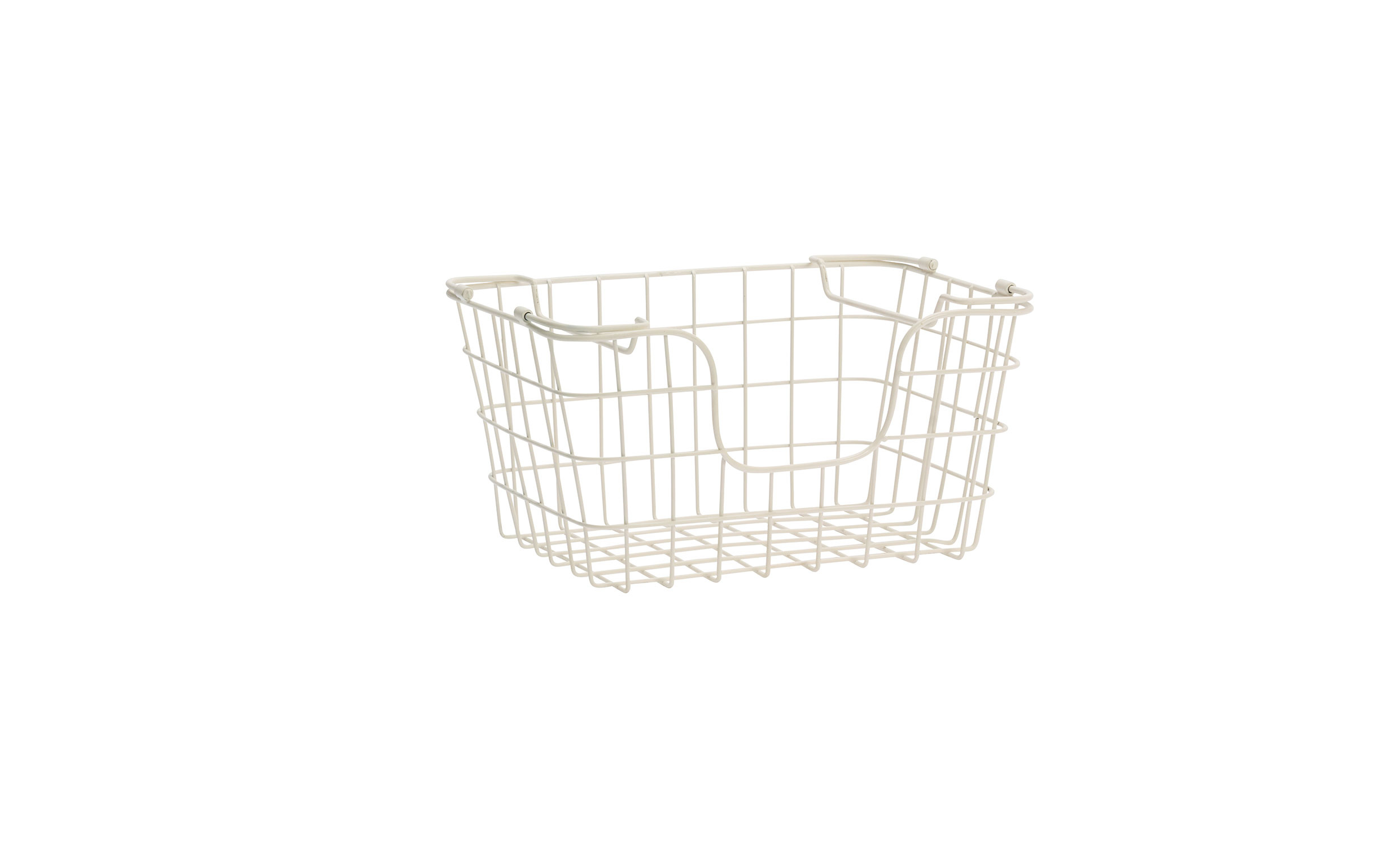 Denna stapelbara trådkorg i offwhite finish är tillverkad i slitstarkt järn med handsvetsad metalltråd som ger en stabil men luftig konstruktion. Den smarta designen gör den enkel att stapla och perfekt för att organisera vardagsföremål i garderober, skåp eller andra mindre utrymmen. En praktisk och stilren förvaringslösning som kombinerar funktion med dekorativ känsla.