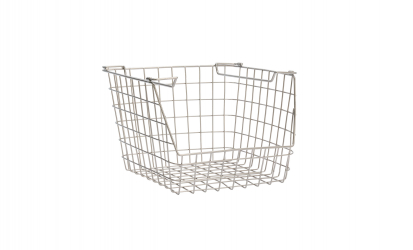 Denna stapelbara trådkorg i stålfinish är tillverkad i slitstarkt järn med handsvetsad metalltråd som ger en stabil men luftig konstruktion. Den smarta designen gör den enkel att stapla och perfekt för att organisera vardagsföremål i garderober, skåp eller andra mindre utrymmen. En praktisk och stilren förvaringslösning som kombinerar funktion med dekorativ känsla.