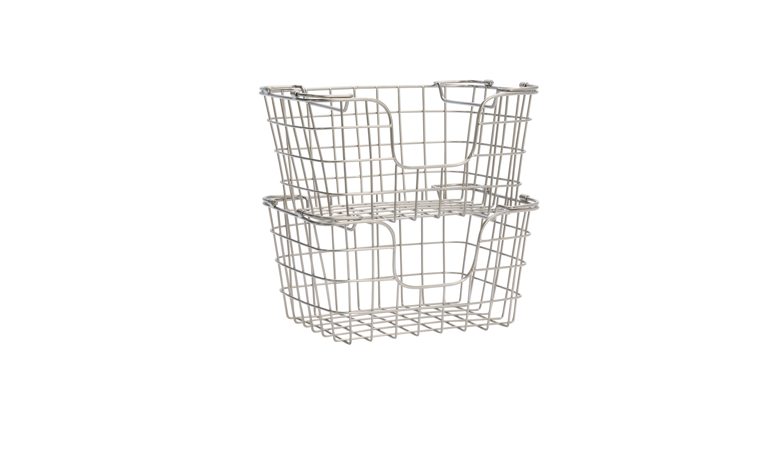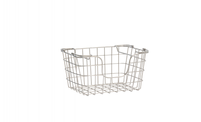 Denna stapelbara trådkorg i stålfinish är tillverkad i slitstarkt järn med handsvetsad metalltråd som ger en stabil men luftig konstruktion. Den smarta designen gör den enkel att stapla och perfekt för att organisera vardagsföremål i garderober, skåp eller andra mindre utrymmen. En praktisk och stilren förvaringslösning som kombinerar funktion med dekorativ känsla.