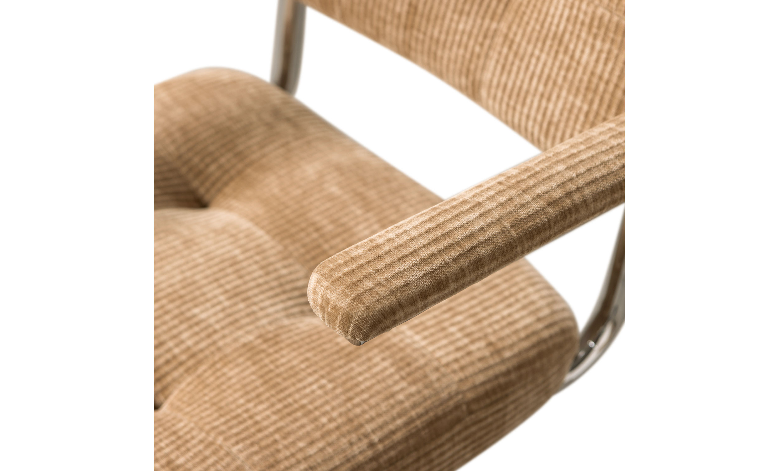 Kova är en skrivbordsstol i sandfärgad ton som kombinerar modern design med hög sittkomfort. Med sin mjuka ribbade klädsel och eleganta form blir den ett stilfullt tillskott till både hemmakontor och arbetsplats. Stolen är utrustad med snurrfunktion, hjul och justerbar sitthöjd, vilket gör den både flexibel och ergonomisk. Den stoppade sitsen, ryggstödet och armstöden ger ett bekvämt stöd – perfekt för långa arbetsdagar eller studiestunder.