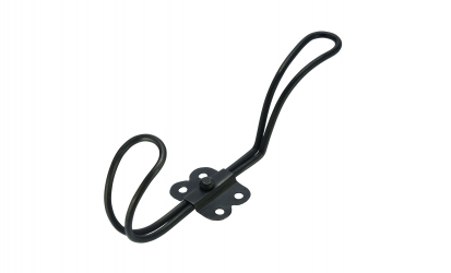 Denna handsmidda väggkrok i järn har en svart finish som ger ett klassiskt och tidlöst uttryck. Den tvådelade designen erbjuder smart upphängning i två nivåer och gör det enkelt att organisera jackor, handdukar eller köksredskap. Skruvar medföljer för smidig montering.