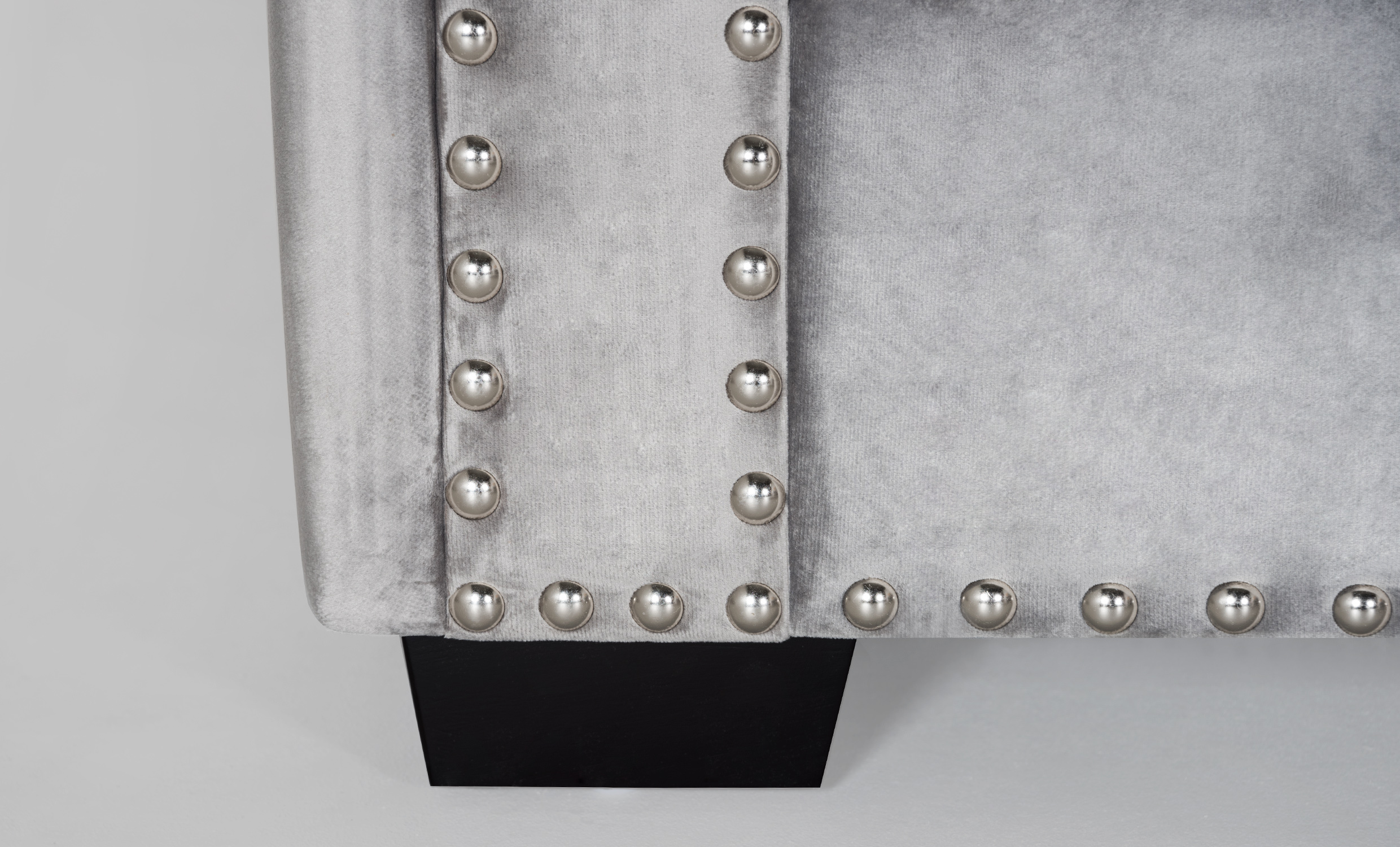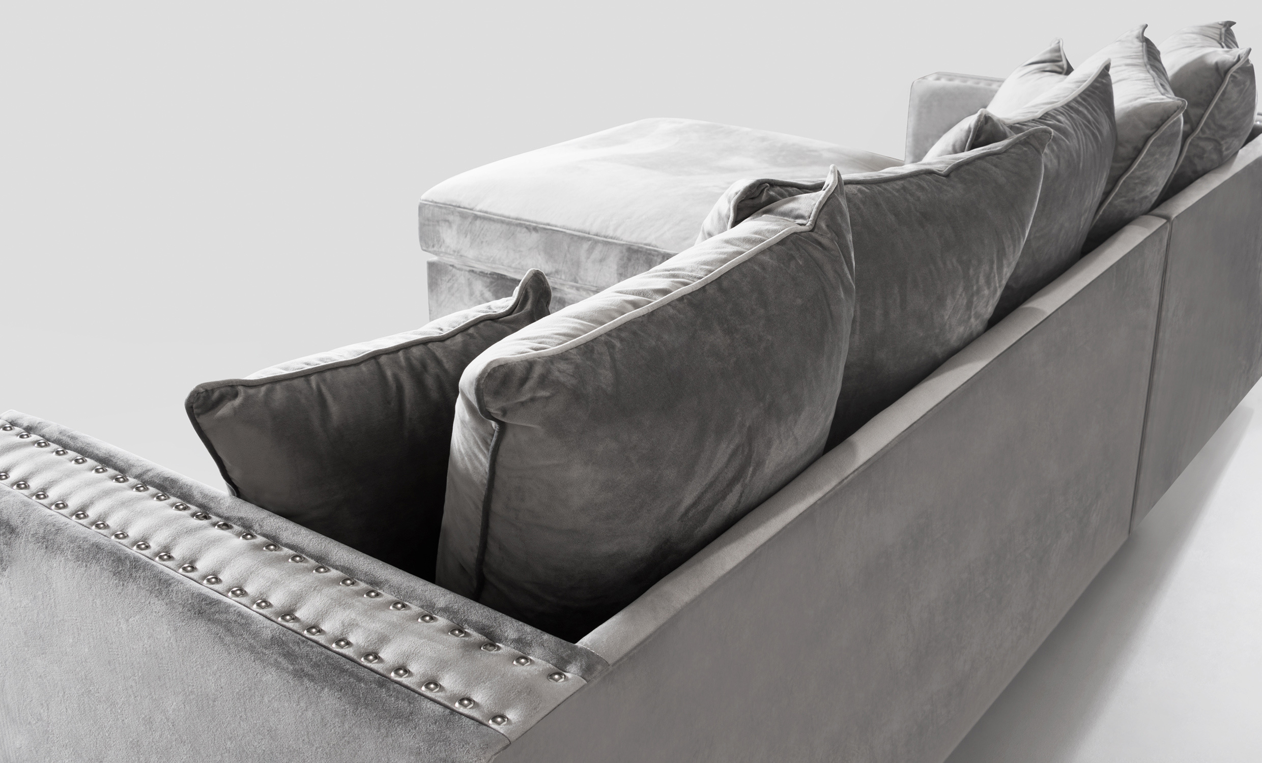 Manhattan är en soffa i stilren modell med ett glammigt uttryck. Soffans generösa dimensioner ger god komfort och utrymme för bekvämt umgänge. Det vackra sammetstyget i kombination med nitarna ger en tuff men lyxig känsla.