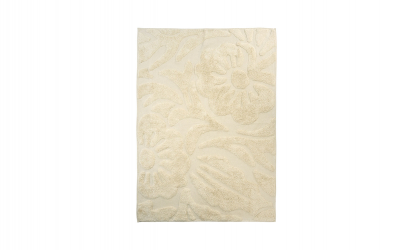 Skapa en harmonisk och ombonad känsla i hemmet med denna tuftade bomullsmatta i elegant ivory nyans. Det stora blommönstret och den tredimensionella strukturen ger ett mjukt och levande uttryck som för tankarna till nordisk minimalism. Mattan är tillverkad i mjuk bomull med latexbaksida som hjälper den att ligga stadigt, och är anpassad för vardaglig användning i både sovrum och vardagsrum.