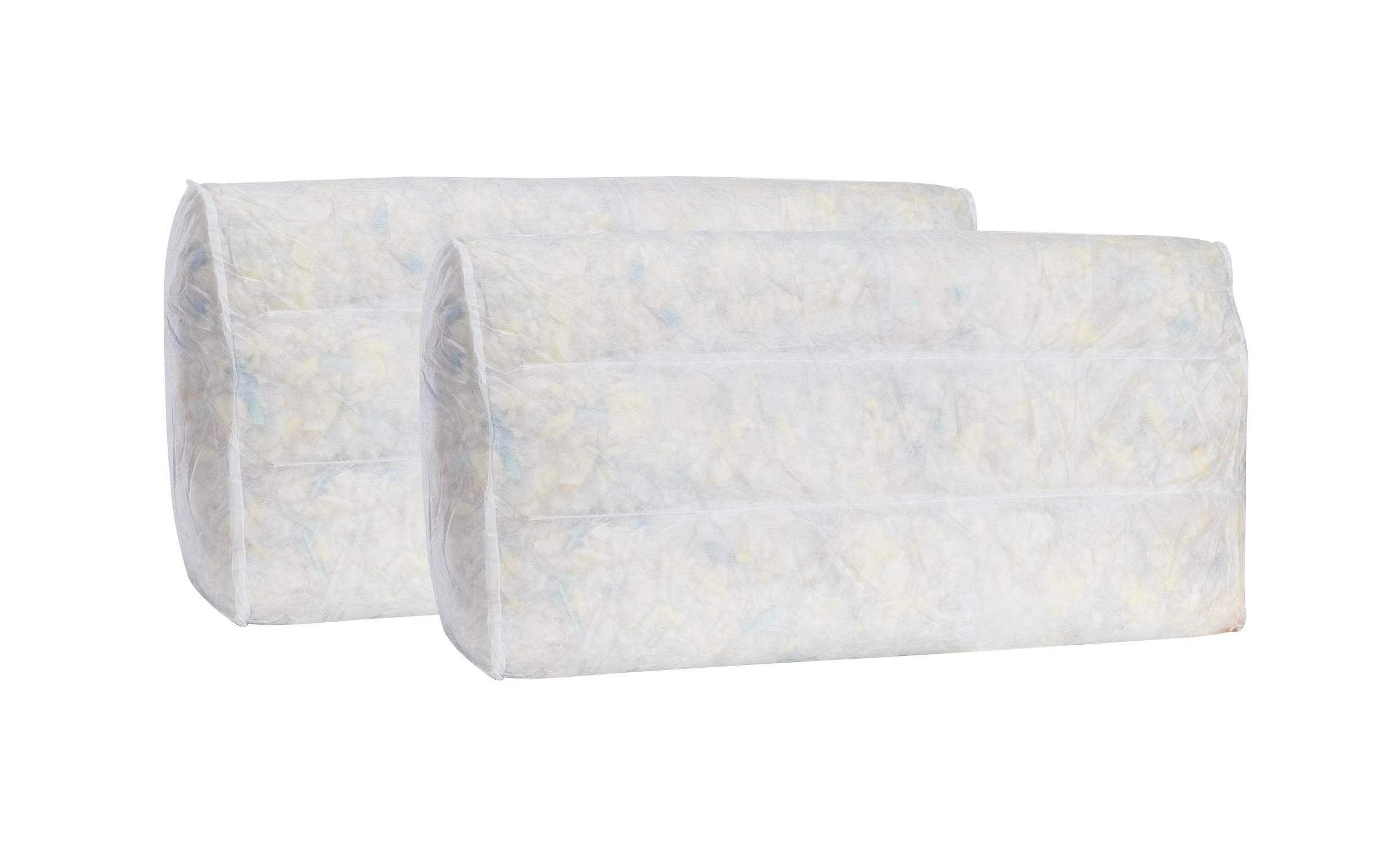 Innerkuddar i 2-pack fyllda med rivet kallskum och polyeter.
