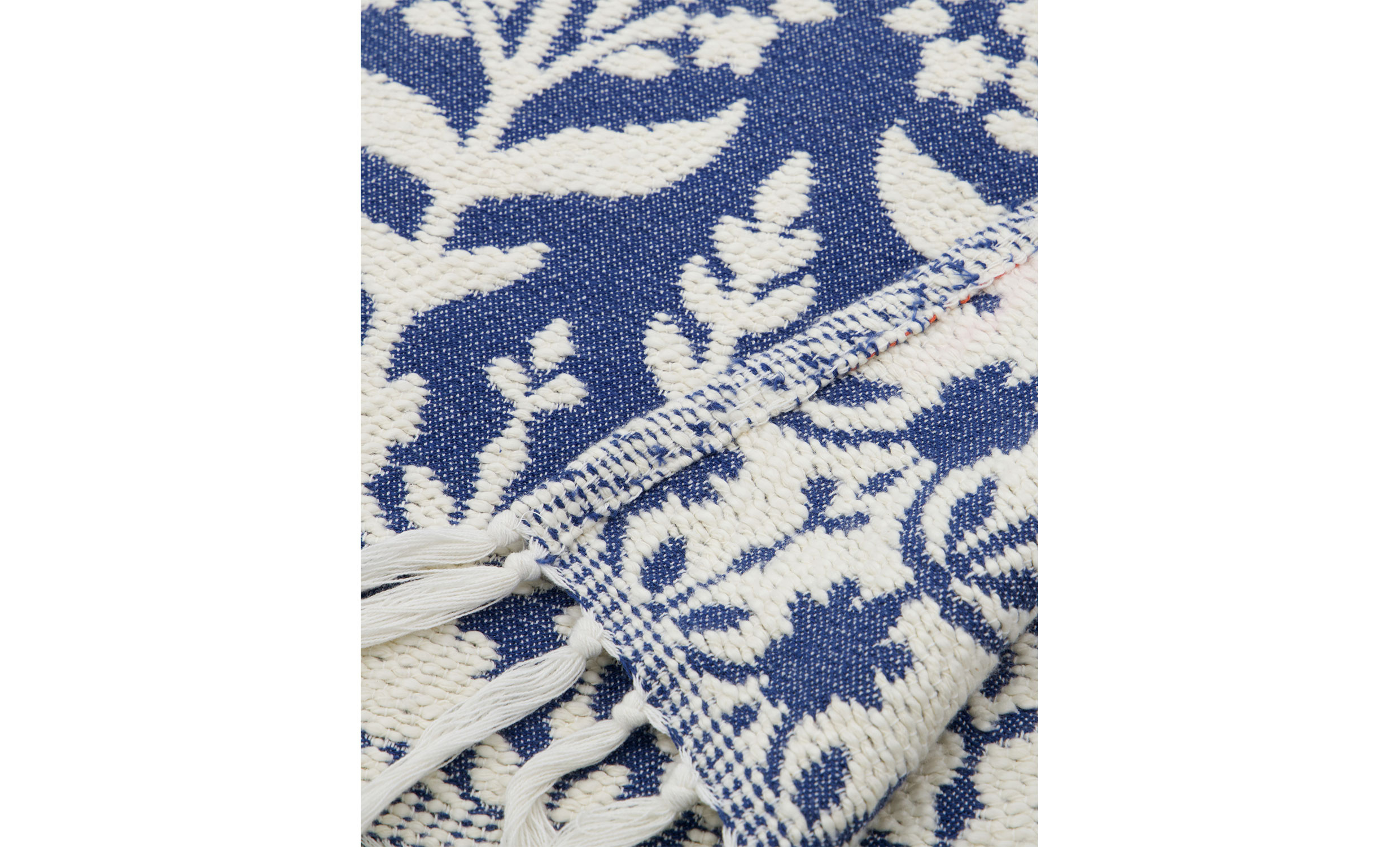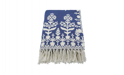 Mazzo överkast är vävd i mjuk bomull och kommer i en djup blå nyans med handgjorda detaljer som ger ett personligt och ombonat uttryck. Överkastets mönster skapar en vacker kontrast och tillför både karaktär och värme. Lägg överkastet över soffan för en färgklick eller använd den som ett extra lager på sängen för en mjuk och inbjudande känsla.