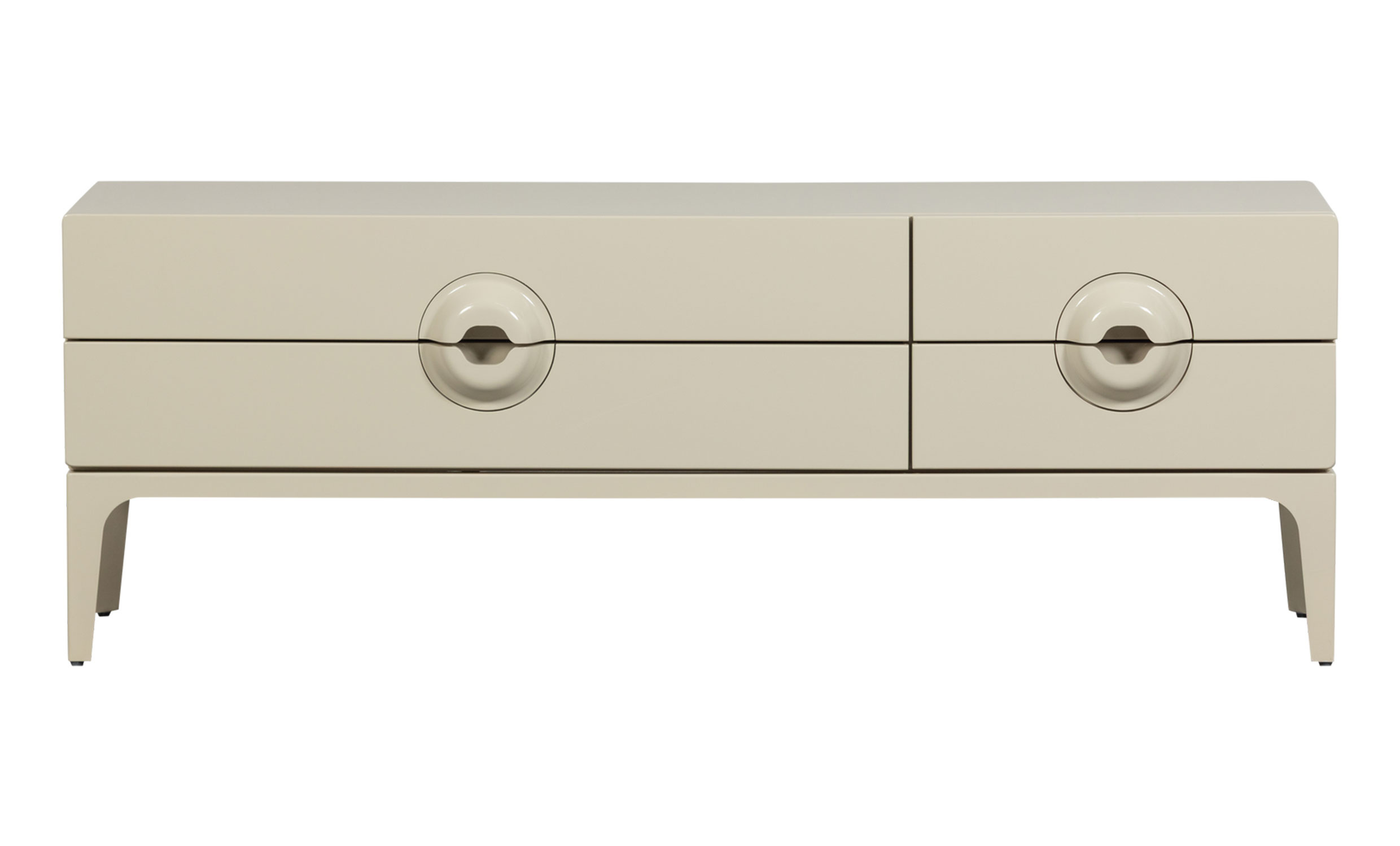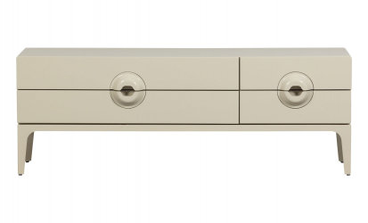 Merge är en TV-bänk som kombinerar en lekfull retrodesign med praktisk förvaring. De unika handtagen och den varma, greiga tonen ger möbeln ett personligt och karaktärsfullt uttryck som lyfter hela rummet. Med fyra rymliga lådor får du gott om plats att förvara elektronik, fjärrkontroller och andra tillhörigheter – snyggt undanplockat men alltid nära till hands. Det stilrena underredet i metall ger en modern kontrast och en stabil konstruktion.