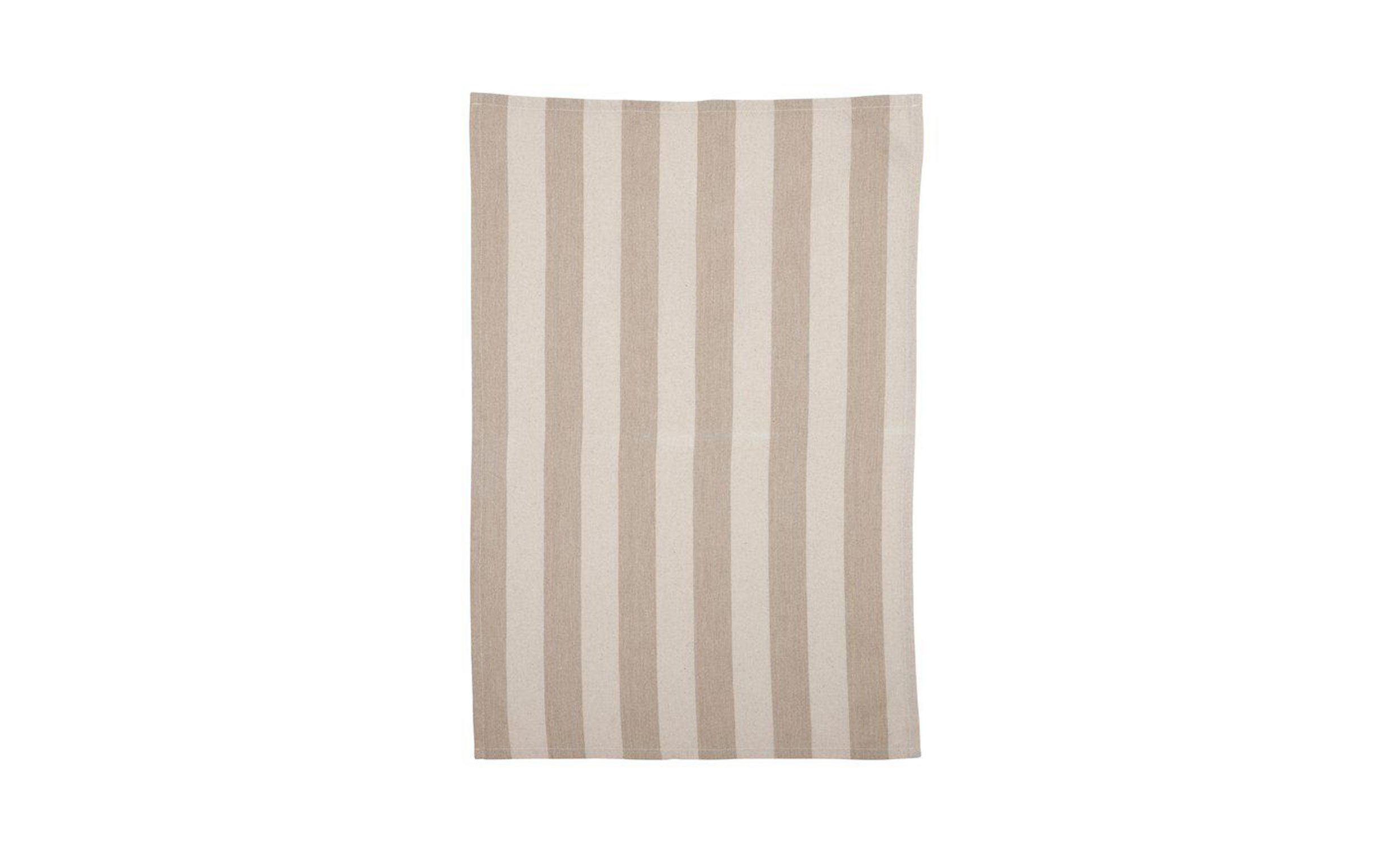 - Kökshandukk med blockrand i linnefärgad ton.