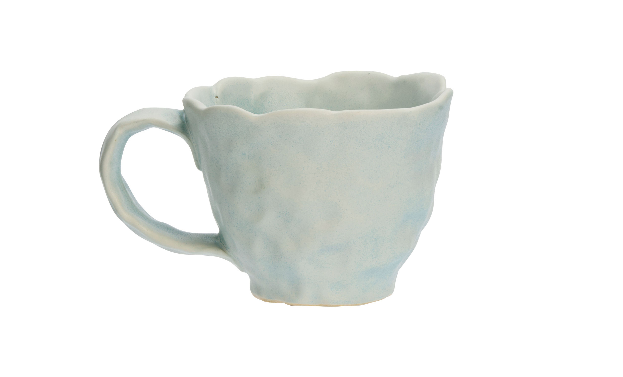 Denna stengodsmugg i mjuk ljusblå ton ger vardagen en lugn och ombonad känsla. Den rundade formen ligger bekvämt i handen och det handgjorda uttrycket skapar en personlig karaktär som passar lika fint till morgonkaffet som till kvällens te. Glaseringen gör att färgintensitet och nyans kan variera något, vilket ger varje mugg ett unikt uttryck.