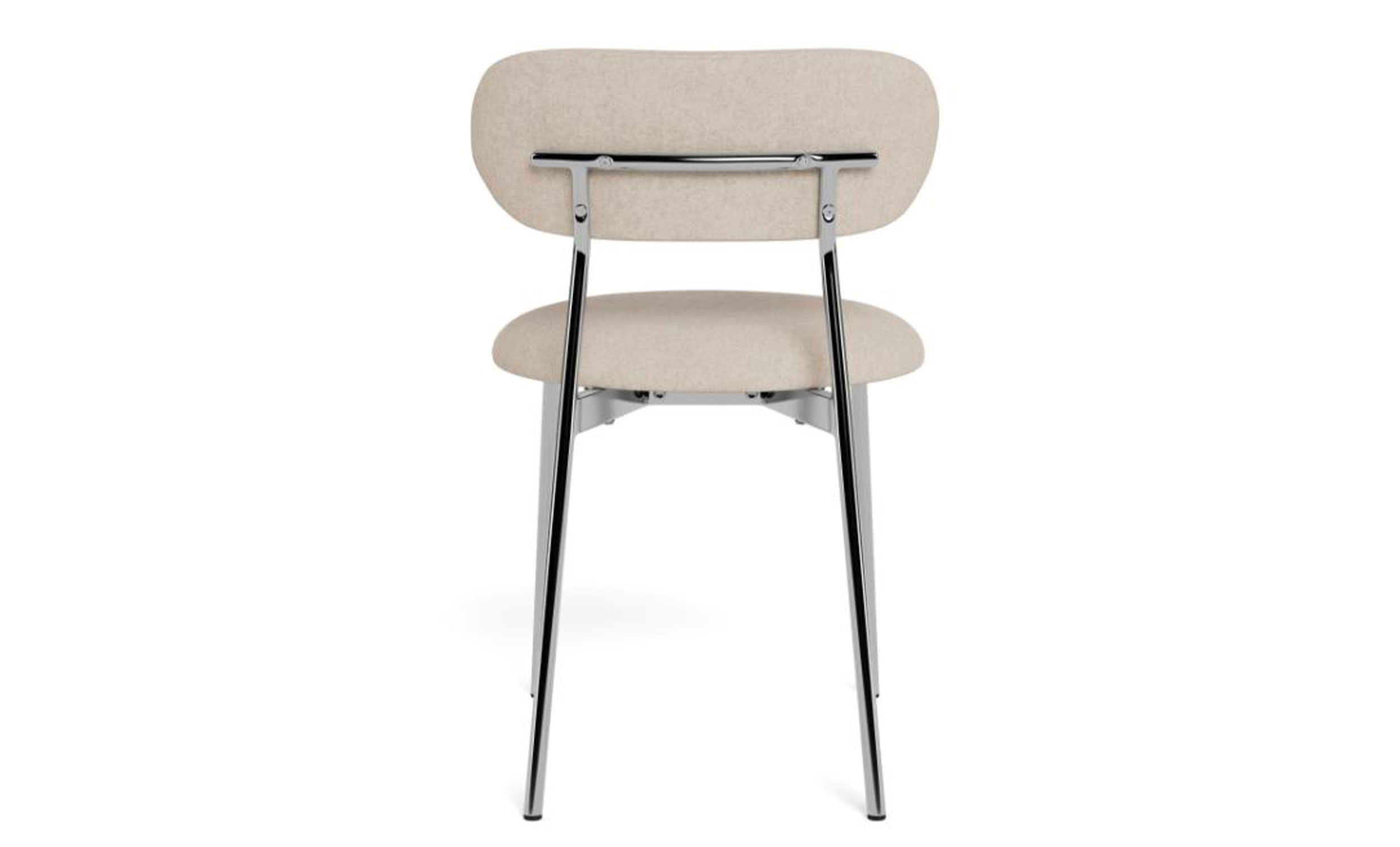 Noiré är en matstol med retroinspirerad design och moderna detaljer. Stolen har en rundad sits klädd i ett sandfärgat chenilleliknande tyg som ger en mjuk och behaglig känsla. Den tubformade ramen och benen är tillverkade i blankt kromat stål vilket skapar en tydlig kontrast och ger stolen ett stilrent uttryck.