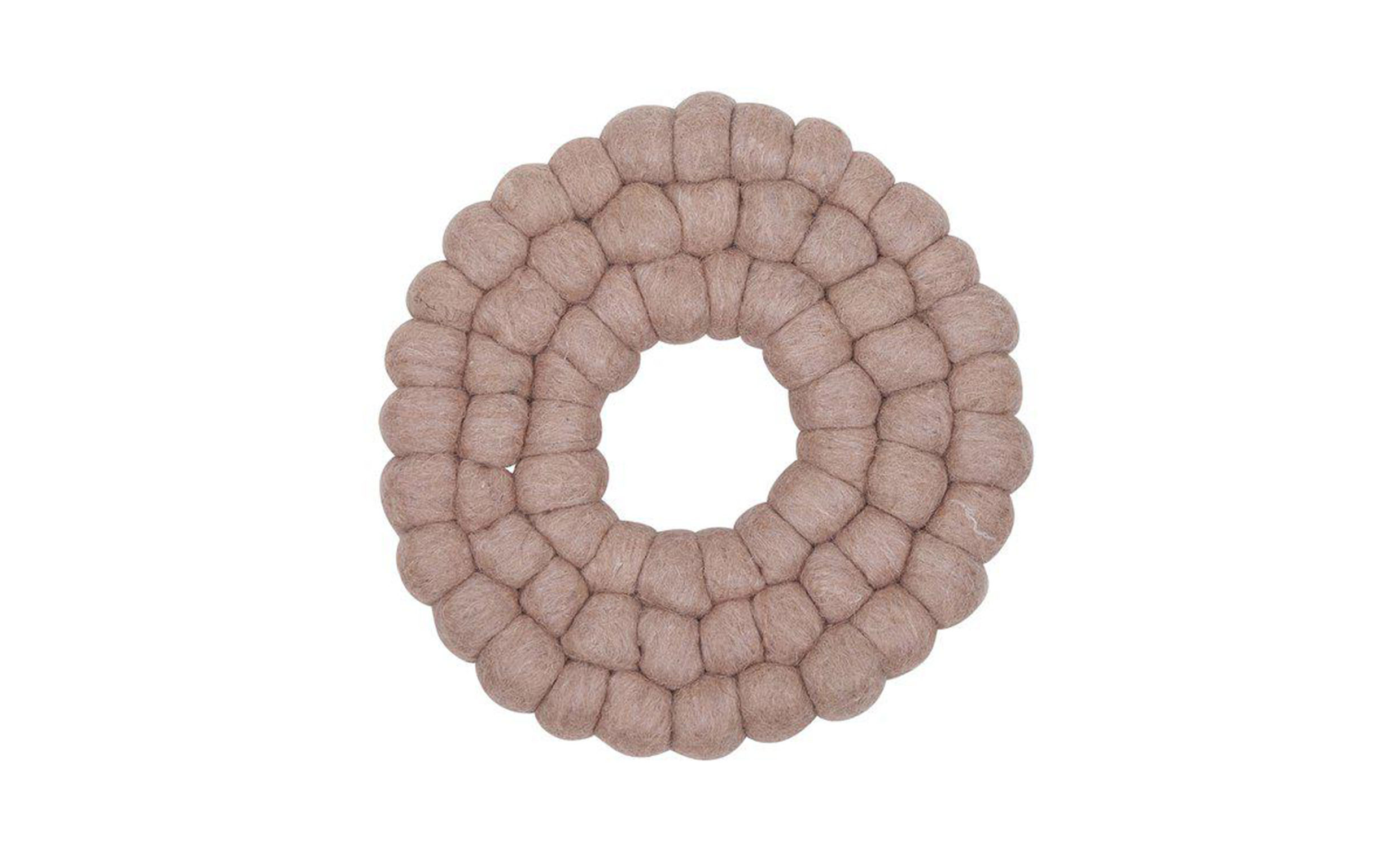 Ralf är ett grytunderlägg i ull som består av små ullbollar som tillsammans skapar en dekorativ och funktionell design. Den tjocka och täta strukturen gör underlägget idealiskt för att skydda bord och bänkskivor från värme, samtidigt som det tillför en varm och naturlig känsla i köket. Ullens naturliga egenskaper gör underlägget både slitstarkt och värmetåligt.