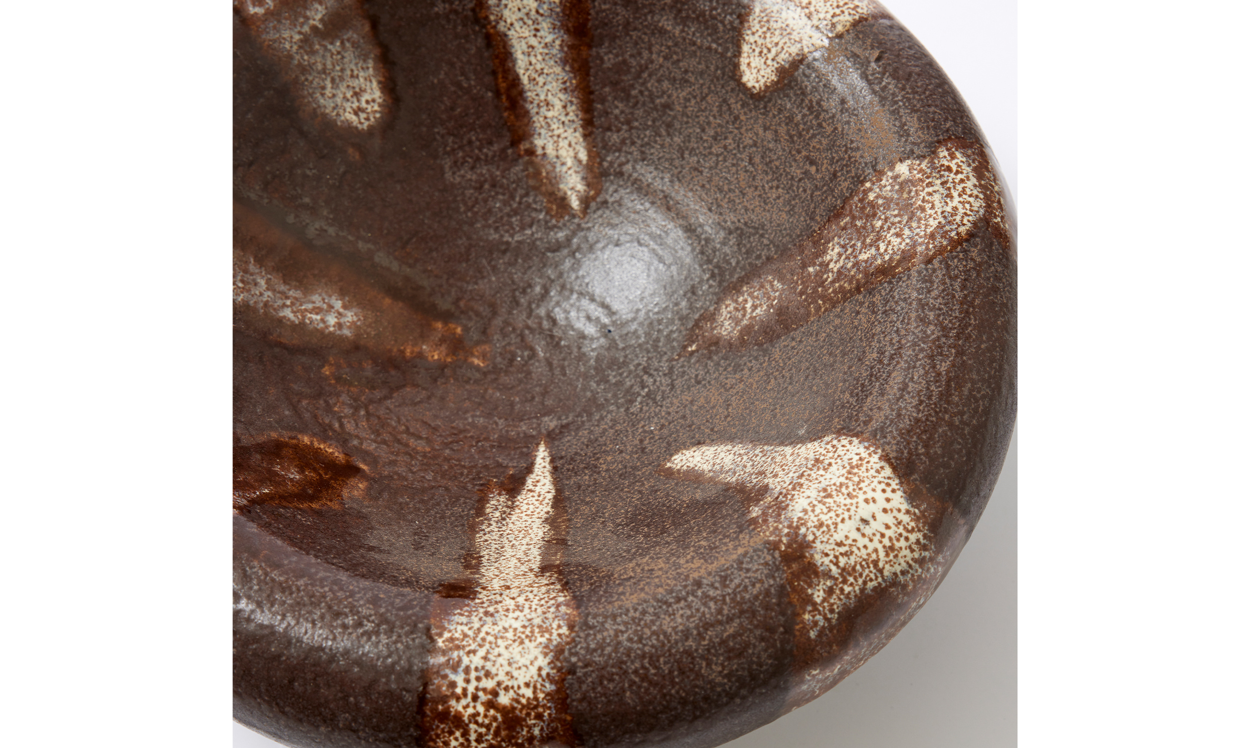 - Dekorativ skål med brunvita ränder.