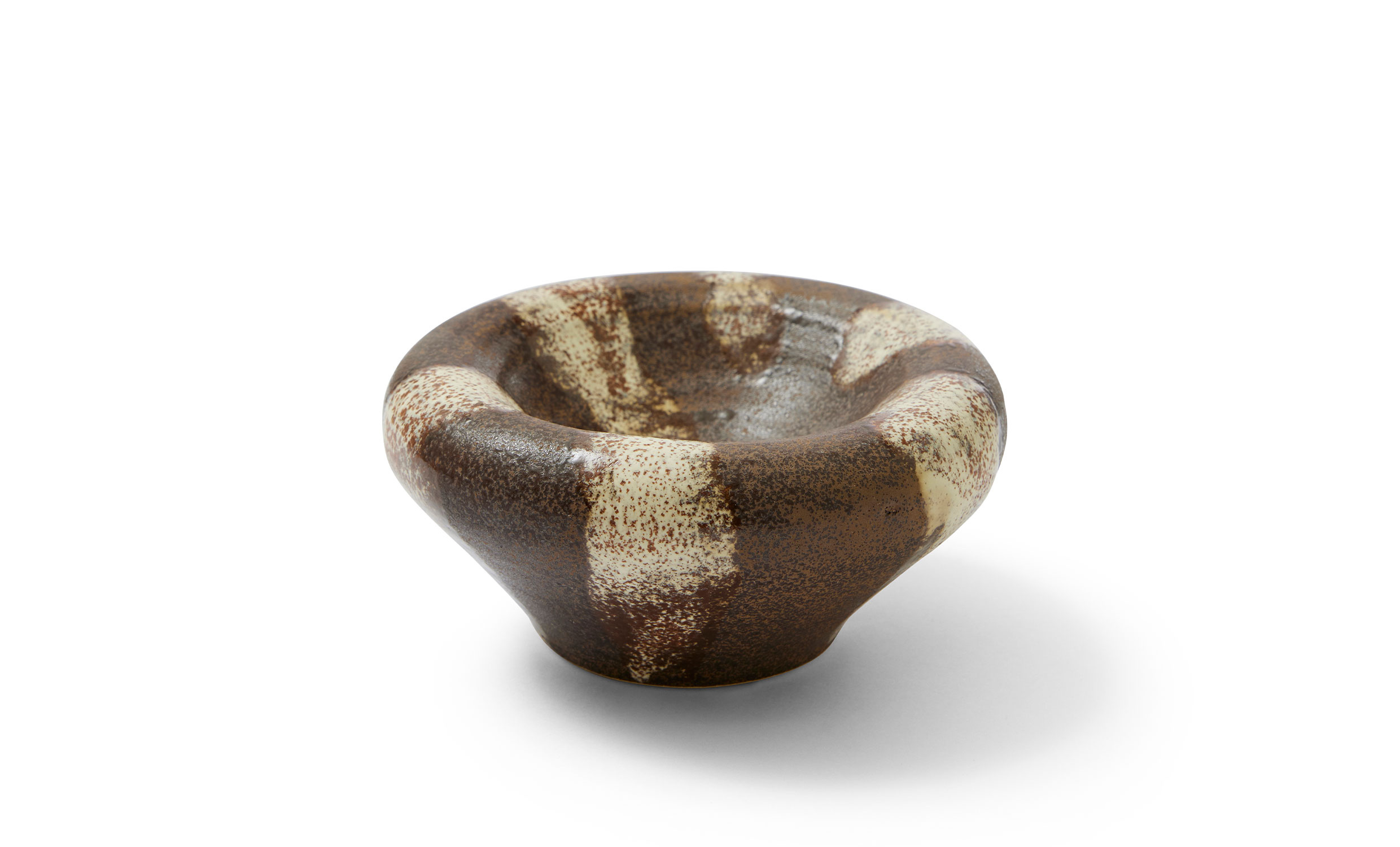 Remi är en dekorativ skål som tillför rustik charm och mjuk elegans till ditt hem. De brunvita ränderna tillsammans med den chunky, rundade formen skapar ett varmt och inbjudande uttryck som passar i många olika inredningsstilar. Skålen är handmålad med reaktiv glasyr, vilket gör varje exemplar unikt med naturliga variationer i färg och finish.