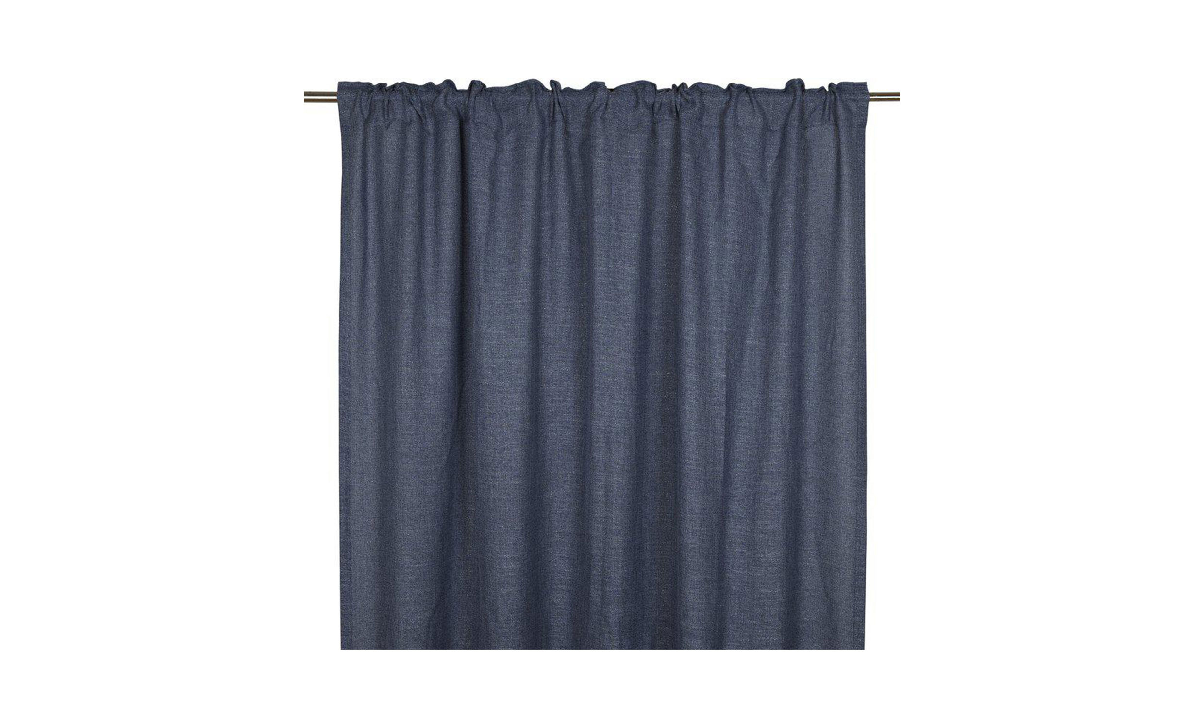 - Gardin i marinblå ton.