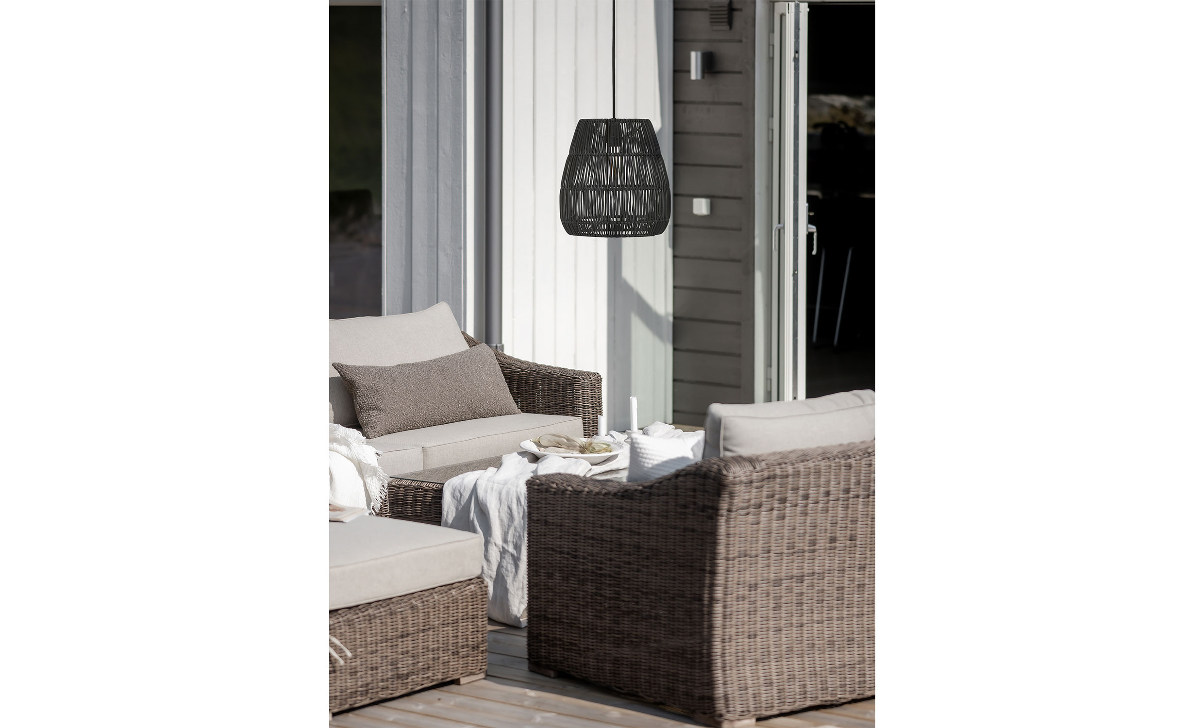 Saigon är en dekorativ utomhusskärm i konstrotting som kombinerar stil och funktion. Konstrotting är ett vädertåligt material som klarar både sol, regn och vind, vilket gör lampan till ett perfekt val för uteplats, altan eller balkong. Den flätade strukturen ger ett mjukt och stämningsfullt ljusspel som höjer atmosfären under kvällarna.