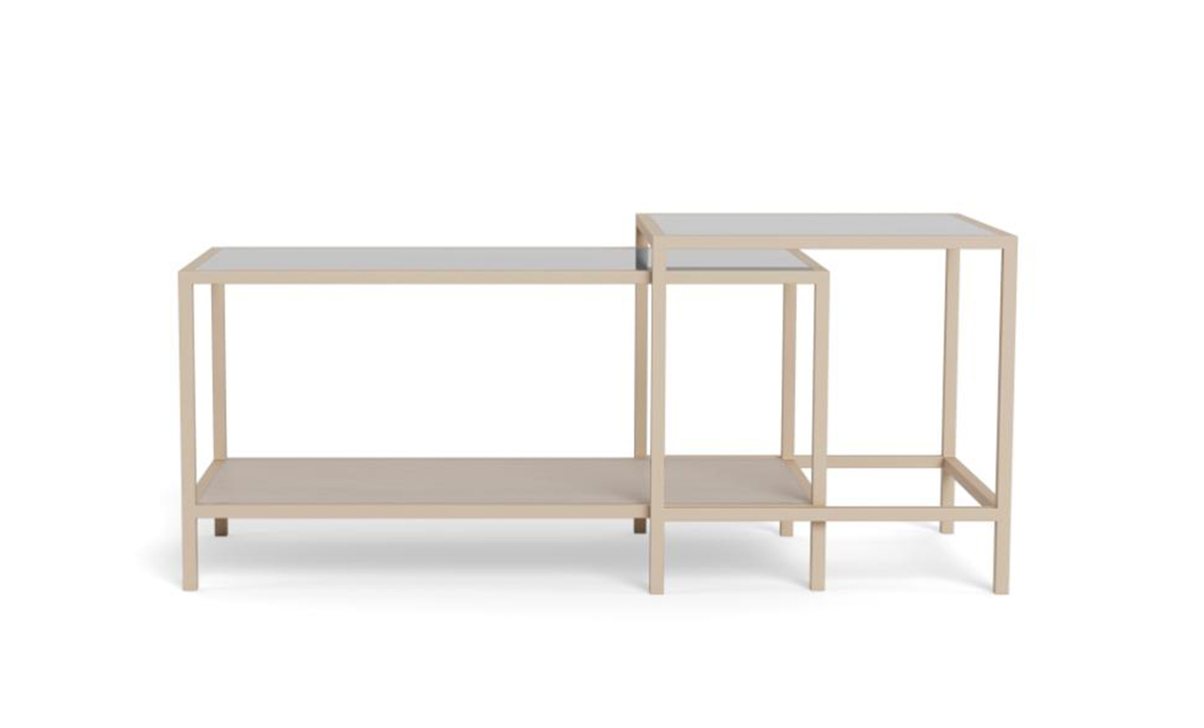 Sandy är ett soffbordset i modern industriell stil med rena former och genomtänkta materialval. Kombinationen av klarglas och grålackerat stål ger ett stilrent och lätt uttryck som passar i många typer av vardagsrum. De enkla, geometriska formerna gör borden lätta att matcha med både mjuka och mer industriella miljöer.