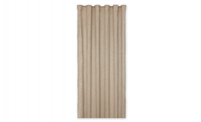 - Gardinset i mjuk beige ton.