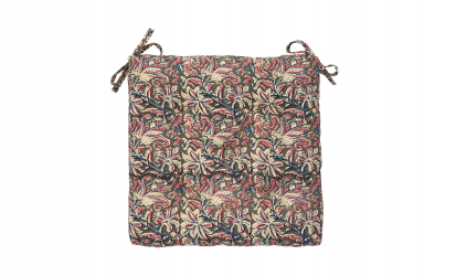 Denna mjuka och dekorativa stolsdyna i bomull har ett konstnärligt blommönster inspirerat av traditionella indiska blocktryck. Färgerna i grått, sand, gammelrosa och dammblå skapar ett lugnt och balanserat uttryck som passar i många miljöer. Dynan är tillverkad i slitstark bomull, har knytband för stabil placering och är fylld med återvunna bomullsrester för en bekväm och mer hållbar komfort. Perfekt vid matbordet, skrivbordet eller i en mysig läshörna.