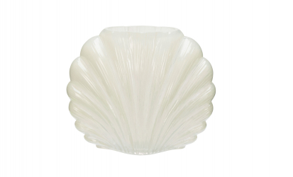 Denna eleganta glasvas i mjuk krämvit nyans har en organisk silhuett inspirerad av snäckans form. Den subtila pärlemorskimmrande ytan och den halvtransparenta, lätt strukturerade finishen skapar ett levande djup och ger vasen ett sofistikerat uttryck. Lika vacker som solitär dekorationsdetalj som tillsammans med blommor på bord eller hylla.