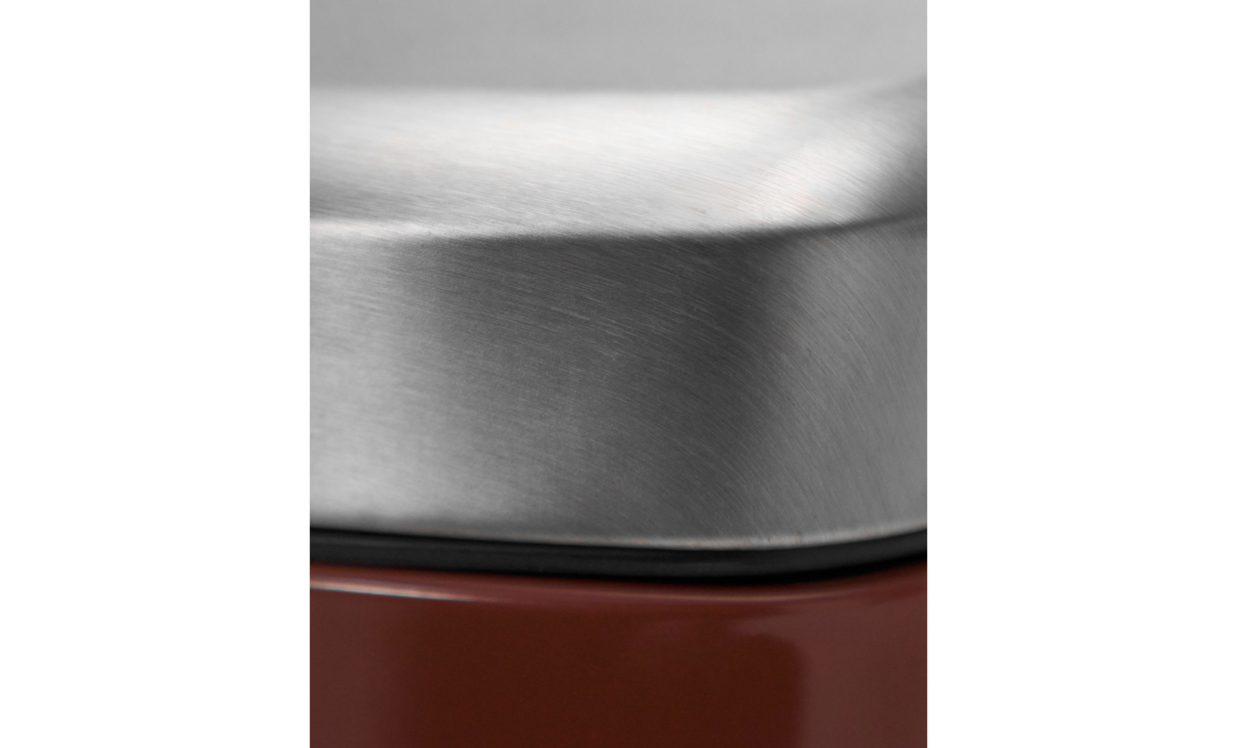 Sort papperskorg är tillverkad i stål med en terrakottabrun finish och erbjuder en modern och stilren förvaringslösning för hemmakontor, kök eller badrum. Den enkla, minimalistiska formen kompletteras av detaljer i borstat stål som ger ett genomtänkt och samtida uttryck.