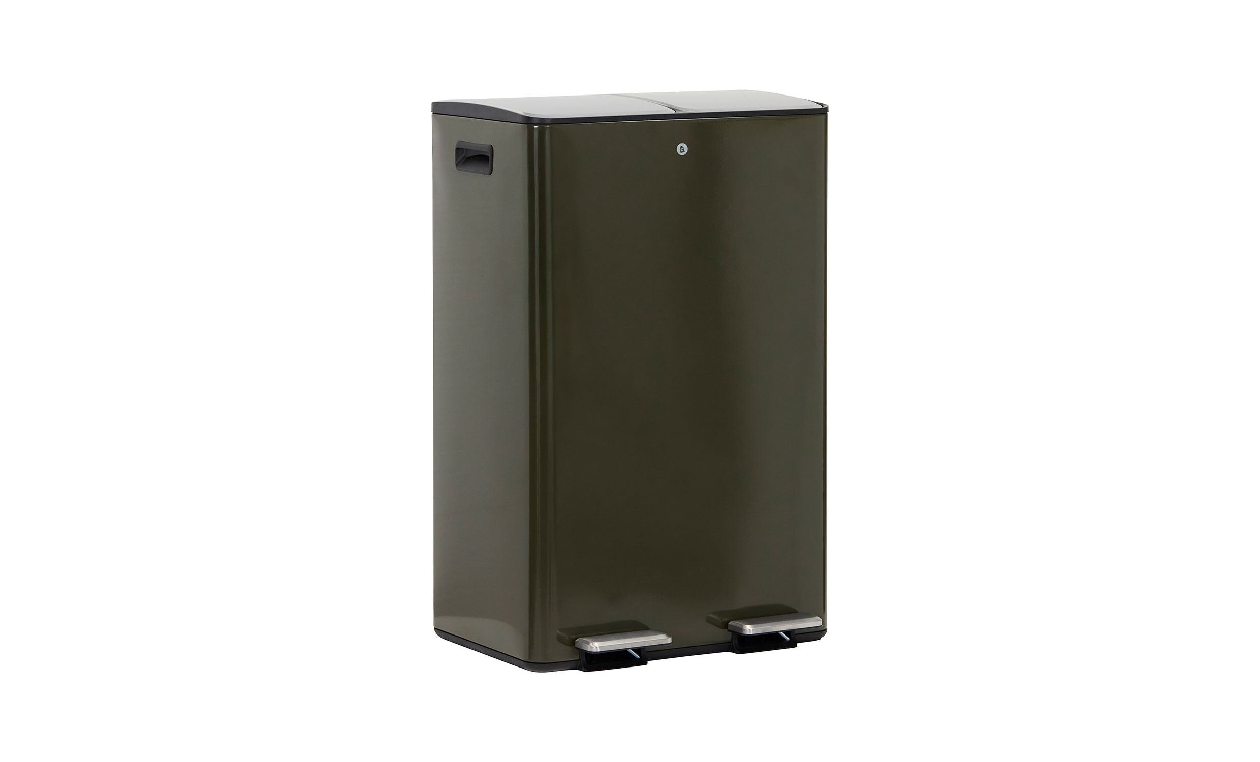 Sort papperskorg är tillverkad i stål med en djupgrön finish och erbjuder en modern och stilren förvaringslösning för hemmakontor, kök eller badrum. Den enkla, minimalistiska formen kompletteras av detaljer i borstat stål som ger ett genomtänkt och samtida uttryck.