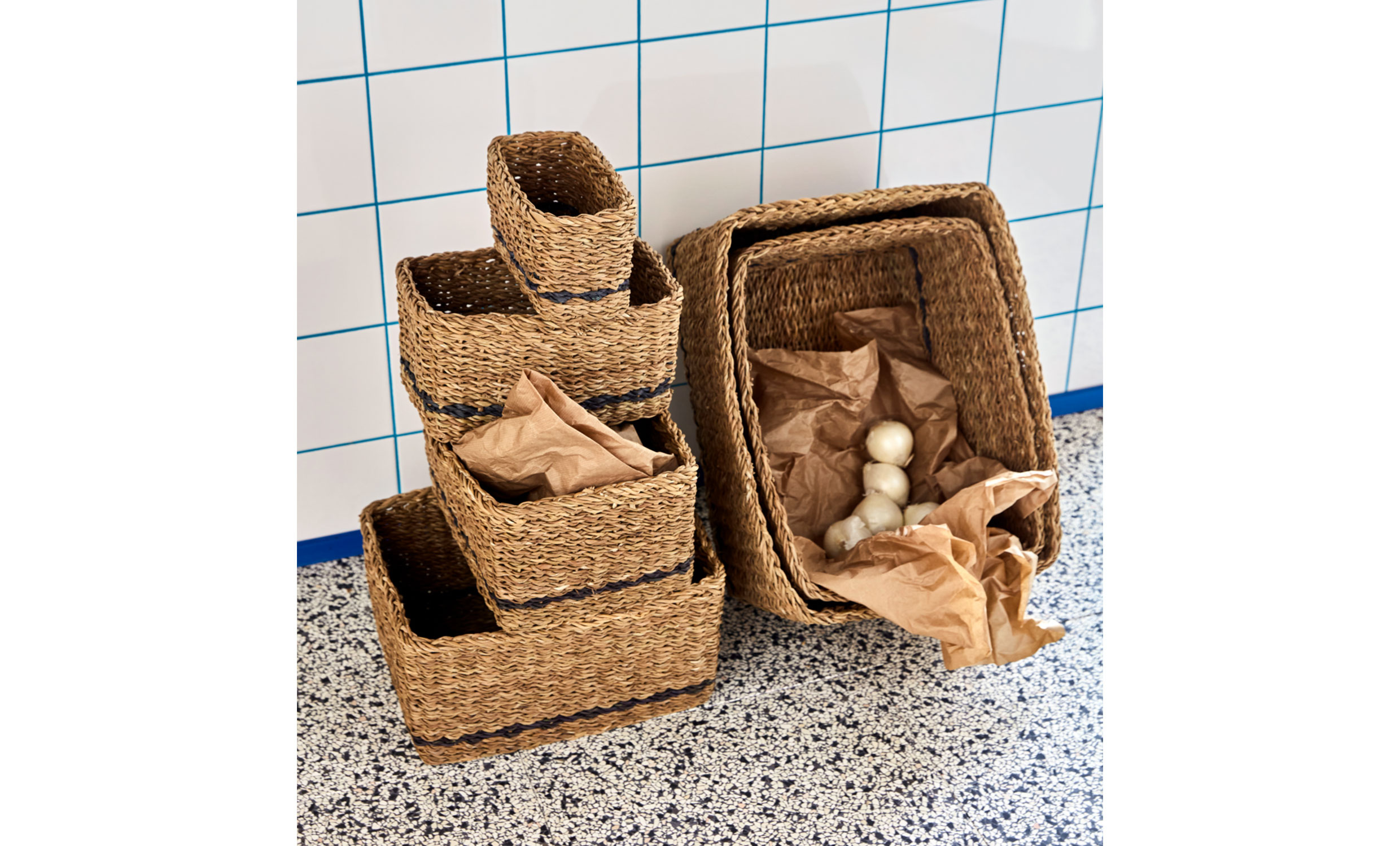 - Korgarna är tillverkade i naturligt sjögräs.